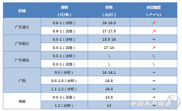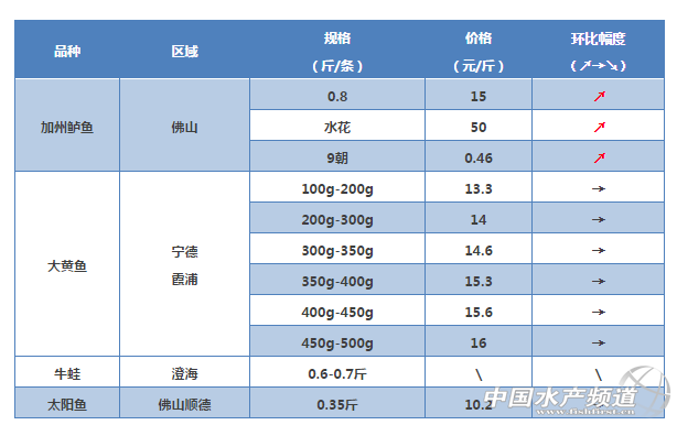 文/圖 粵海飼料集團、水產前沿 吳佳輝 海鱸 福建莆田、東山、詔安區域:鱸魚養殖存塘魚主要為1.6斤以上魚,大規格鱸魚難賣。市場銷售活魚主要規格在1-1.2斤規格,隨著市場規格鱸魚(1-1.2斤)存塘量減少(不足1成),規格鱸魚價格穩定。 金鯧魚 廣東湛江區域:近期1斤左在規格存魚較少,價格略升;湛江區市郊金鯧魚苗放苗1900萬尾,比例6成。 廣東陽江區域:本地金鯧開始少量上市;目前魚苗放苗約2千萬尾,比例4成。 廣東潮汕區域:市場上無成品魚,無價格參考。 廣西區域:廣西金鯧存排量不大,而且規格較小,多數未達到上市要求;目前,廣西鐵山港放苗數量大約2千萬尾,占了4成。 海南區域:海南金鯧過冬魚已經快賣完,現比較缺8兩左右的活魚,所以價格較好,但1.2斤及以上的打冰鮮,受到凍庫魚的影響,價格一直漲不起來;目前海南已投苗約6千萬尾,占4成。 黃顙魚 廣東佛山區域:目前黃顙魚存塘量不多,西樵成魚存塘量不足1成,開塘放苗養戶增加,下個月放苗持續增加;三水存塘來量3-4成,放苗1-2成,最近價格較為平穩,未來幾天價格持續穩定。 羅非魚 廣西區域:存魚量少,凍廠開工不足,走市場的魚價相對好很多,1.3斤以上5.1-5.3元/斤。 華南其它區域:目前羅非魚達上市存塘量很少,保持目前價格沒問題;過冬中小魚(2-6兩)還有部分存塘量,正在加快喂料促長中;春苗剛投放。 草魚 中山區域:4-7斤大規魚存塘量相對少,價格上漲。 廣西區域:規格魚存量少,價格基本持平,池塘魚價微漲0.2元/斤。 上海崇明島區域:草魚現在是有史以來價格最高的一年,現在底下養戶還在等待價格上漲,后期應該價格維持現有。 石斑魚 海南區域:雖然需求不旺,但是近期石斑魚上市較少,價格穩定;放苗約有3成。 陽江區域:現在石斑魚存魚少,魚價上漲。 其他品種 加州鱸魚:佛山區域目前成魚存塘量較少,未來價格呈上漲趨勢,受成魚價格的影響及放苗末期,水花產量較低,價格有所上漲。蘇南區域鱸魚價格現在不是很高,價格最高應該會出現在6月份以后。 大黃魚:福建寧德、霞浦區域大黃魚市場穩定,同比上周價格基本保持穩定。 牛蛙:澄海區域去年養殖的成品蛙賣完,新蛙未達到上市規格,牛蛙市場出現空白,蛙價無明顯變化。 太陽魚:佛山順德區域整體成魚存塘量下降,杏壇存塘量低,下月逐步開塘,本月勒流成魚流通量加大,市場需求平穩,價格持續穩定。 史上最嚴的休漁即將到來,你會擁有什么樣的漁業機會? 休漁年年有,為何今年號稱“史上最嚴休漁”?如果按往年歷史,今年的休漁與往年比,是有三個不同的地方: 1、休漁開始時間進行了統一,渤海、黃海、東海及北緯12度以北的南海(含北部灣)海域,所有海區的休漁時間統一為5月1日12時。 2、統一和擴大了休漁類型,首次將南海的單層刺網納入休漁范圍,即在我國北緯12度以北的四大海區除釣具外的所有作業類型,均要休漁;首次要求為捕撈漁船配套服務的捕撈輔助船同步休漁。 3、休漁時間延長,各海區休漁時間普遍提前一個月,定置作業休漁不少于三個月。 但以上三點,還不足以說明“最嚴”。按我對今年休漁的理解,今年所謂的“最嚴”是體現在執法的嚴肅性上。其實,往年的休漁規定與今年的規定相關差別不多,但往年的執法往往流于形式,今年則不同了。舉例說,往年也要求漁船回船藉港停泊,有些漁船就是不回,偏要停泊在其他港口,漁政往年都是罰款了事,但今年則強制驅離。“三無漁船”在休漁期間的偷捕,往年也是罰款了事,但今年則決定對偷捕的三無漁船進行強制銷毀。 雖然休漁越來越嚴,但海洋資源特別是漁業資源卻是越來越缺少。依我看,整個中國海海即使是連續三年全年休漁怕也沒有辦法恢復到上世紀的資源狀況。越來越嚴的休漁最后的真相是:海資源洋環正在惡化,而且趨勢是越來越嚴重,海里的東西是越來越少了,包括南沙。南沙的海產資源也在迅速衰退中,我們的遠洋捕撈,經濟效益也很一般,絕大部分漁船是依靠國家的油補政策存活。 人類對海產品的需求卻是一直增長的,海產品的提供,無非是兩種:海洋捕撈、海洋養殖。此消彼長,海洋捕撈日漸衰退,海洋養殖則如日中天。從這個角度來看,我們的養殖業前途無量。在我看來,嚴峻的休漁背后,預兆著下一波的養殖高峰即將到來。至少在以下幾方面,將會呈現井噴式發展。 一、公益性養殖如海洋牧場類型將會大量發展 海洋牧場是一種全新的養殖概念,雖然帶有公益性質,但牧場二字又則隱含經營的意義。 一般而言,牧場建設包含了魚礁、底播貝類、海底藻類等,力圖建設海洋立體生態環境。從目前來看,海洋牧場雖然是政府主導的公益性投資,但從長遠來看,海洋牧場所隱含的經濟價值不容小看,特別是觀光式海洋旅游漁業價值,這將會是未來的漁業經濟增長點。可以說,海洋牧場是繼捕撈、養殖、人工放流之后,集環境保護、資源保護、景觀生態建設、觀光漁業為一體的全新業態。這個全新的業態,現在是由政府主導,但在不遠的將來,海洋牧場未來是民間資本的投資熱點。 二、高技術的外海養殖,特別是以深水風箱為代表的養殖模式在未來幾年內將會爆發性增長 無論是農業部還是國家海洋局都不約而同地將深水網箱列入重點支持產業。注意,我說的是“深水網箱產業”,因此,無論是養殖設備生產、養殖、加工等環節,都將從中受益。可以預見的是,未來幾年內,除了生產一大批養殖