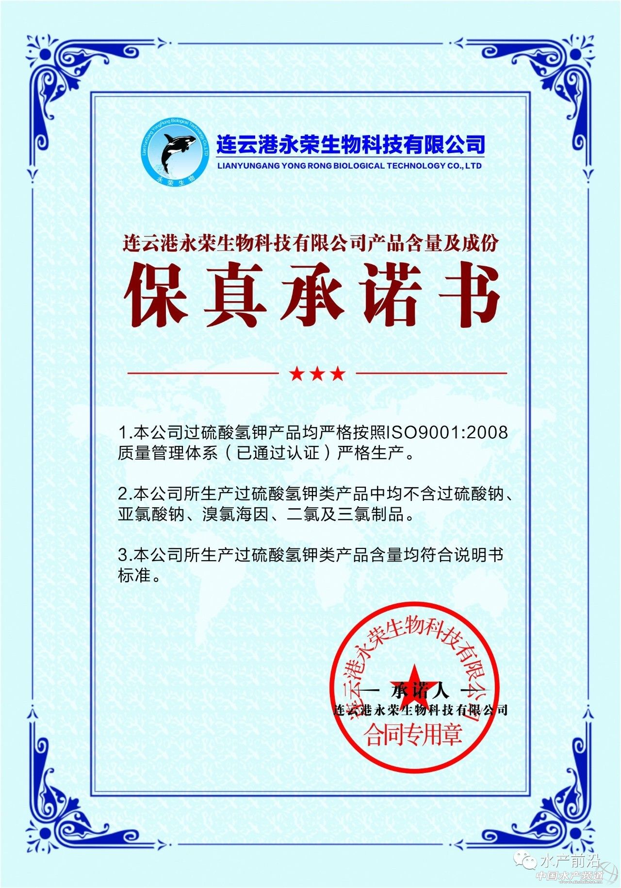 文/圖 水產(chǎn)前沿 實習編輯 李齊財 中國水產(chǎn)頻道獨家報道,過硫酸氫鉀是這幾年動保界炙手可熱的產(chǎn)品,在動保產(chǎn)品漸趨同質(zhì)化的當下,過硫酸氫鉀在水產(chǎn)中的應用似乎給沉悶的動保市場開了一扇窗。它一方面有良好的應用價值,效用可圈可點,另一方面在動保產(chǎn)品同質(zhì)化的大背景下,符合企業(yè)推廣新產(chǎn)品的切實需求?梢哉f,過硫酸氫鉀是養(yǎng)殖戶層面和動保企業(yè)之間利益的“最大公約數(shù)”,其迅速“走紅”也就順理成章。 由于買賣雙方信息不對稱,很多產(chǎn)品在推向市場的初期,都會伴隨質(zhì)疑和猜測,這一點在水產(chǎn)非藥品行業(yè)尤其明顯。過硫酸氫鉀到底是一款怎樣的產(chǎn)品?它能解決哪些養(yǎng)殖問題?又有何比較優(yōu)勢?如何鑒別真?zhèn)危?/div> 此次筆者采訪了連云港永榮生物科技有限公司水產(chǎn)事業(yè)部經(jīng)理趙海永,聚焦探討關于過硫的產(chǎn)品本身。永榮生物(公司簡稱)是一家專注單過硫酸氫鉀復合鹽應用的企業(yè),在進軍水產(chǎn)之前,該公司在電子領域耕耘多年,早在2002年,就將美國杜邦的單過硫酸氫鉀復合鹽引入中國大陸,應用于電路板微蝕,此后將其應用拓展至污水處理、消毒和土質(zhì)改良等方面,在過硫的應用領域頗有建樹。 水產(chǎn)前沿:永榮生物進入水產(chǎn)時間并不是很長,公司是否為此做好了充分準備? 趙海永:連云港永榮生物的水產(chǎn)事業(yè)板塊雖然啟動較晚,但公司擁有16年研發(fā)和應用單過硫酸氫鉀復合鹽的經(jīng)歷,也積累了豐富的生產(chǎn)經(jīng)驗。我司在軟、硬件方面的投入非常大,好的產(chǎn)品背后一定有軟、硬件匹配的雙向支撐。 軟件方面,我們依托西南農(nóng)大水產(chǎn)學院在2016年做了兩項研究:《過硫酸氫鉀藥敏試驗報告》與《一種漁藥對四種水產(chǎn)養(yǎng)殖動物幼苗的急性毒性研究》,分別驗證了我們公司產(chǎn)品的相對性效果以及公司產(chǎn)品的安全性。同年,我們還獲得了《江蘇省涉及飲用水衛(wèi)生安全產(chǎn)品衛(wèi)生許可批件》、《消毒產(chǎn)品生產(chǎn)企業(yè)衛(wèi)生許可證》。 硬件方面,永榮生物加大投資力度,2016年一次性通過ISO:9001認證,整個廠區(qū)都做了環(huán)氧地坪處理,規(guī)劃了標準的生產(chǎn)廠房和車間,產(chǎn)品嚴格按照ISO質(zhì)量體系生產(chǎn),我們這些所有的硬件均只為過硫酸氫鉀復合鹽這個產(chǎn)品服務。 水產(chǎn)前沿:過硫酸氫鉀有哪些功效?能解決哪些養(yǎng)殖問題? 趙海永:經(jīng)過復配后的單過硫酸氫鉀復合鹽我們稱之為過硫酸氫鉀復合鹽,在水產(chǎn)上的應用主要有兩個方面:第一是改良底質(zhì);第二是抗菌。 從底改的角度看,我們可以稱之為第五代底改,前四代底改分別為吸附型、生物型、殺菌型、氧化型,他們分別具備1-3種優(yōu)點,只有真正的過硫酸氫鉀復合鹽底改類產(chǎn)品具備多項優(yōu)點:增氧、氧化、抑菌、通透、擴散、凈水、解毒、除臭、增食、降氨氮、降亞硝。底質(zhì)的改變對整個水體的影響非常之大,尤其到了中后期,養(yǎng)殖出現(xiàn)的問題往往是由底質(zhì)改變引起的,而定期使用過硫酸氫鉀復合鹽底改片,能有效預防和處理底質(zhì)的一系列問題,從而有利于養(yǎng)殖成功率的提升。 水產(chǎn)前沿:目前過硫酸氫鉀在水產(chǎn)中大多用于改底和消毒,那么比起一般的改底和消毒產(chǎn)品,在效果表達上,過硫酸氫鉀有哪些優(yōu)勢? 趙海永:首先,我們談一下底改類產(chǎn)品,水產(chǎn)行業(yè)從2004年左右開始推廣底改類產(chǎn)品,在過硫酸氫鉀之前有四代底改產(chǎn)品: 吸附型:主要以沸石粉、棒土、聚鐵、聚鋁、聚丙、腐鈉為主,主要起到吸附、沉淀等效果,是目前仍在使用的一大類底改; 生物型:主要將芽孢菌造成顆粒,方式主要是壓片或滾球,對菌的損失不可控,目前推廣一直不太理想; 殺菌型:主要以四羥甲其硫酸磷、碘、高錳酸鉀等殺菌成份為主原料,通過滾球或壓片制成可沉入底部的底改產(chǎn)品,能有效清除底部的一些有害細菌,減少耗氧、降低硫化氫等有害物質(zhì)。 普通氧化型:主要是以亞氯酸鈉、過硫酸鈉、亞硫酸鈉或其他一些氯制劑為主,壓成片劑,能快速氧化底泥,控制有害菌,這種類型是假冒過硫酸氫鉀復合鹽的主流。 過硫酸氫鉀復合鹽底改片:以單過硫酸氫鉀復合鹽為主,復配其他緩釋劑、有機酸、表面活性劑等,具有增氧、氧化、抑菌、通透、擴散、凈水、解毒、除臭、增食、降氨氮、降亞硝等多種功能,因此過硫酸氫鉀被稱為第五代底改產(chǎn)品。 我們水產(chǎn)中常用的消毒產(chǎn)品大多為單質(zhì)殺菌類產(chǎn)品,比如碘、戊二醛、苯扎溴銨等,當然也有一些復配型的產(chǎn)品,比如通過表面活性劑為碘增效,但總體來說殺菌功能較為單一。而單過硫酸氫鉀復合鹽具備了更復雜的抗菌途徑,其具有很強的氧化系統(tǒng),溶解后產(chǎn)生各種高能量、高活性的小分子自由基、活性氧等衍生物,通過鏈式反應系統(tǒng)破壞微生物細胞膜的通透性,干擾病原體的DNA和RNA合成,從而殺滅病原微生物。 對于水產(chǎn)來說,底質(zhì)問題與抗菌問題仍然是我們無法繞開的兩座大山,而過硫酸氫鉀復合鹽則對攻破這兩座大山提供了新的可能。 水產(chǎn)前沿:怎樣鑒別過硫酸氫鉀產(chǎn)