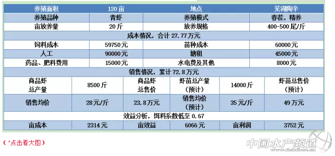 中國水產(chǎn)頻道獨家報道,白云水產(chǎn)該批春茬蝦平均畝產(chǎn)達到187.5斤,餌料系數(shù)低至0.67,畝成本僅2314元,每畝凈利潤達3752元!且其蝦體晶瑩剔透,條形勻稱,賣相好!蝦苗產(chǎn)出規(guī)格一致,出苗早,僅經(jīng)過3個多月的培育,6月20日就已有規(guī)格蝦苗出售,比一般的早了10天左右! 文/圖 安徽天邦飼料科技有限公司 吳繼松 羅淵 一、陶辛青蝦養(yǎng)殖概況 陶辛青蝦為安徽省蕪湖縣陶辛鎮(zhèn)特產(chǎn),中國地理標志產(chǎn)品。色澤鮮亮,個體大,殼簿肉嫩,品質(zhì)特點明顯!早在北宋時期,陶辛鎮(zhèn)就有增殖、捕蝦、吃蝦的歷史,至今陶辛鎮(zhèn)一帶農(nóng)民還保留著用“蝦繒”捕蝦的傳統(tǒng)方式,民間也有“無魚不成席,無蝦不成宴”的佳話流傳。此外,蕪湖民間節(jié)日“蝦子燈”、“馬燈”中都帶有濃厚的“蝦”文化色彩。陶辛青蝦人工池塘養(yǎng)殖始于上世紀50年代,90年代發(fā)展大規(guī)模養(yǎng)殖,到目前陶辛青蝦主養(yǎng)面積近1萬畝。 陶辛青蝦養(yǎng)殖一般分春茬、秋茬兩季。春茬側(cè)重于蝦苗的畝產(chǎn)量,一般僅在1/5的塘口放苗,其他塘口不投放。春茬蝦苗在每年的2-3月放養(yǎng),放養(yǎng)上年秋茬繁殖越冬的蝦苗,規(guī)格為400-500尾/斤,放養(yǎng)密度為15-30斤/畝(10000尾/畝左右),采取沿池邊均勻散放的方式。秋茬蝦采取全塘口放養(yǎng),側(cè)重于提高大規(guī)格蝦的比例。秋茬蝦苗一般為當年繁育的蝦苗,7月初開始放養(yǎng),規(guī)格在3000-4000尾/斤(規(guī)格約1.5-2cm/尾),放養(yǎng)量為20斤左右/畝(70000-80000尾/畝左右)。一般蝦苗下塘10天左右,放養(yǎng)規(guī)格在1-3斤/尾的花白鰱,密度為20尾/畝,用于調(diào)節(jié)改善水質(zhì)、減輕藍綠藻暴發(fā)、控制秋苗繁殖密度。 陶辛青蝦商品蝦 二、餌料系數(shù)低至0.67,畝利潤達3752元 蕪湖縣白云水產(chǎn)養(yǎng)殖公司(簡稱“白云水產(chǎn)”)目前有約180口塘,養(yǎng)殖面積共計870畝左右,其中,120畝用來養(yǎng)春茬蝦。2017年3月初,白云水產(chǎn)開始陸續(xù)在30口塘中投放春茬蝦苗(規(guī)格約400-500尾/斤),每畝約投放20斤,總放養(yǎng)量2400斤。白云水產(chǎn)全程投喂天邦全熟化青蝦料,共約7.5噸。經(jīng)過2個多月的養(yǎng)殖,2017年5月12日開始銷售,目前共售商品蝦8500斤,最大規(guī)格者達36尾/斤。按照目前打樣情況保守估計規(guī)格蝦苗(1.5-2cm/尾左右)的產(chǎn)量為14000斤,平均售價約35元/斤,銷售額可達到49萬元。 一般當?shù)靥招燎辔r的春茬平均畝產(chǎn)量僅80-150斤,餌料系數(shù)在1.2左右,凈利潤僅約1000-2000元/畝。而白云水產(chǎn)該批春茬蝦平均畝產(chǎn)達到187.5斤,餌料系數(shù)低至0.67,畝成本僅2314元,每畝凈利潤達3752元!且其蝦體晶瑩剔透,條形勻稱,賣相好!蝦苗產(chǎn)出規(guī)格一致,出苗早,僅經(jīng)過3個多月的培育,6月20日就已有規(guī)格蝦苗出售,比一般的早了10天左右! 白云水產(chǎn)6月2日所售大蝦,規(guī)格最大者達到36尾/斤 6月23日隨機打樣蝦苗,平均規(guī)格1.3±0.4cm/尾 表1,白云水產(chǎn)2017養(yǎng)殖春茬陶辛青蝦收益概況 三、苗、料及日常管理關鍵點 取得如此好的養(yǎng)殖成績,白云水產(chǎn)負責人繆增田十分高興,他笑著總結(jié)說:“水要好,苗要好,料要好,管理很重要,青蝦才能養(yǎng)殖成功!”針對苗、料及日常管理,繆總給我們進行了詳細解析。 取得如此好的養(yǎng)殖成績,白云水產(chǎn)負責人繆增田十分高興 1、苗種選育最關鍵 青蝦同塘自繁特性促使苗種產(chǎn)量高,但近親交配繁殖,易導致優(yōu)良性狀退化、商品蝦規(guī)格小,抗病力、抗逆性差,直接影響到成蝦品質(zhì)及產(chǎn)量。特別是當?shù)刭u商品蝦時習慣將體格健壯、個體大的大蝦提前出售,因為早賣大蝦價格好,但如此一來,待到繁殖時,剩下的都是老弱病殘的小老蝦,它的后代質(zhì)量顯而易見不會很好。 為了防止苗種退化,繆總的做法是:每天捕獲時,挑取規(guī)格大、體質(zhì)健碩、條形完美的雄蝦,將距離甚遠的兩塘口所挑選出來的雄蝦進行互換;對于雌蝦,則將規(guī)格大、條形豐滿者留原塘。這樣對親本進行處理后,苗種的產(chǎn)量高,且后代性狀穩(wěn)定,規(guī)格大。今年收獲時,最大的雄蝦達15克,“蝦王”實至名歸!在提高苗種成活率方面,繆總采取當?shù)貍鹘y(tǒng)方法,用純?nèi)斯だW(wǎng)捕取蝦苗,雖然要花費不少人工和時間,但該種方式捕獲的苗種成活率高,性價比高!這也是蕪湖陶辛的蝦苗價格高于其他地方的一個重要原因。 2、 高品質(zhì)的全熟化青蝦料是首選 青蝦屬于雜食性,在人工養(yǎng)殖情況下,優(yōu)質(zhì)飼料是獲得高產(chǎn)高效的關鍵,自行配制的加工飼料及普通硬顆粒料,餌料系數(shù)高,在水中穩(wěn)定性差且易污染水質(zhì),使用該類型飼料的商品蝦規(guī)格小,產(chǎn)量低。繆總深知飼料的重要性,故而選擇了真正的完全熟化,無粉塵,在水中穩(wěn)定性高的天邦全熟化青蝦料!“這種青蝦飼料投入水中,15鐘左右軟化,但軟而不散,耐撕咬,不易產(chǎn)生啃食碎屑,適合青蝦抱食啃食的攝食習慣。”繆總說道。 白云水產(chǎn)全程使用天邦全熟化青蝦料 除此之外,天邦全熟化青蝦料添加特有的發(fā)酵原料以及低淀粉,在調(diào)理腸道,保肝護肝,提高機體的免疫力方面效果明顯。合理的配方,均衡全面的營養(y