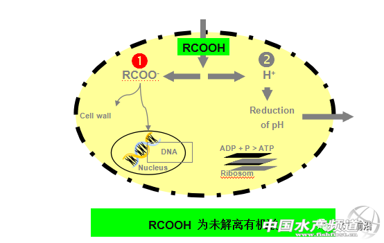 中國水產頻道獨家報道,抗生素因為食品安全及細菌耐藥性問題,其在飼料中的使用越來越受到限制。短中鏈脂肪酸(C1-C14)及其衍生物(脂肪酸鹽及脂肪酸甘油酯)具有廣泛的抑菌效果及其他營養作用,是抗生素強有力的替代品。脂肪酸及其衍生物在抑菌機理和抑菌效果受到碳原子數量和衍生產物類型的影響,并且其在飼料中的應用受到其它因素(飼料加工、胃腸道消化吸收、腸道內pH等)的影響。短鏈脂肪酸(以丁酸為代表)的抑菌作用、營養作用及其他功能性作用(如免疫、腸道屏障等)研究非常充分,但是其在飼料中的應用卻受到了氣味、加工、動物吸收等等方面的限制。隨即出現了脂肪酸鹽、包被脂肪酸及脂肪酸甘油酯。中鏈脂肪酸碳鏈長度在8到14之間,其抑菌機理與短鏈脂肪酸完全不同。中鏈脂肪酸甘油酯是一種非離子表面活性劑,可以直接穿過細菌細胞膜,并成為細胞膜的一部分,從而改變細胞膜的穿透性;同時抑制細菌中脂肪酶(在細菌定植黏膜細胞表面過程中所必須的)的活性。中鏈脂肪酸及其衍生物抑菌效果高于短鏈和長鏈鏈脂肪酸,其最小抑菌濃度比短鏈脂肪酸可低10倍。此外更有研究表明中鏈脂肪酸甘油酯對病毒有很強的抑制作用。本文綜述了短中鏈脂肪酸及其衍生物的抑菌機理和抑菌效果,以期為養殖業應用此類產品提供使用依據。 文/圖 上海亙泰實業集團 朱滔 黃小燕 王根虎 廣東美瑞科海洋生物科技有限公司 虞予 近年來,脂肪酸及其衍生物的抑菌活性也一直受到人們的關注.已有研究表明,脂肪酸及其衍生物可抑制絲狀真菌以及酵母菌的生長,同時也可抑制細菌的生長繁殖。研究表明脂肪酸及其衍生物對常見致病細菌(鼠傷寒沙門菌、單核增生李斯特菌、副溶血性弧菌)存在抑制作用。脂肪酸根據碳原子的多少分為短鏈脂肪酸、中鏈脂肪酸和長鏈脂肪酸。碳原子數為1-6的脂肪酸成為短鏈脂肪酸,也稱揮發性脂肪酸,主要包括乙酸、丙酸、異丁酸、丁酸、異戊酸、戊酸。碳原子數為8-14的脂肪酸成為中鏈脂肪酸,中鏈脂肪酸包括辛酸、癸酸、月桂酸、肉豆蔻酸。短鏈脂肪酸可以被腸道上皮細胞吸收,在腸道中既能作為能量被利用,也能調節腸道菌群平衡。并且短鏈脂肪酸對于維持大腸的正常功能和結腸上皮細胞的形態和功能具有重要作用。中鏈脂肪酸主要存在于椰子油和棕櫚油等植物油中,己酸至癸酸含量在椰子油約為15%。棕櫚油中的辛酸和月桂酸約占55-60%。另外反芻動物乳中含量也高,牛油中含量低于6%。大量研究表明,中鏈脂肪酸可以降低動物消化道和內臟微生物數量以及動物產品受微生物污染的機會。它不僅能夠滅活病菌,還能改變病原體的致病毒性。實驗表明,中鏈脂肪酸有減少梭狀芽胞桿菌和沙門氏菌的毒力,抵抗疾病,減少腸道以及全身病毒的效果。因此本文綜述了短鏈和中鏈脂肪酸及其衍生物的抑菌機理、抑菌活性,為其在動物日糧中的使用提供理論基礎。 1、短鏈脂肪酸 1.1、抑菌機理 游離脂肪酸的一般抗菌活性機理。其中一種廣為認可的假設是短中鏈脂肪酸以它們未解離的形式擴散到細菌細胞原生質內,然后解離,從而導致細胞內酸化(Sun等1998)。較低的細胞內pH可導致細胞內的酶失活(Viegas和Sa-Correia1991),和氨基酸轉運抑制(Freese等,1973)。 圖1-1非電離有機酸抑菌殺菌機理 在偏酸(pH為3-4)的環境,非電離的有機酸可穿入大部分細菌胞膜,有機酸在胞內電離產生氫離子,而導致胞內pH偏低(Russell和Diez-Gonzalez,1998),影響到細菌內生物大分子的功能。為了維持胞內pH呈中性,細菌必需動用能源ATP來運送氫離子到胞外。但此耗能工作終將導致細菌用盡能源而死亡(Guilloteau等,2010)。而酸根離子則有可能影響到胞核內的基因表達,下調其毒性,如侵入腸膜細胞能力。比利時科學家VanImmerseel等(2006)已證明丁酸對沙門氏菌就具有下調其毒性基因表達的效果,而導致沙門氏菌在腸道內的危害大為減弱。由于有機酸滅菌功能主要來自于非解離分子狀態,而解離程度與環境pH值和其本身的解離常數(pKa),所以有機酸抑菌殺菌的效果受到環境酸堿度及其本身的電離特性(pKa)(表1)的影響。丁酸及丙酸的效率應高于甲酸、乳酸和苯甲酸。有機酸的殺菌作用在偏酸(pH=4)環境較偏堿(pH=7)環境強,在pH=4有機酸多以非電離結構存在,因而易于殺滅有害細菌。 表1,有機酸在家禽消化道的結構式與部位的酸堿度有直接關系 1.2、短鏈脂肪酸抑菌效果 表2列出丙酸及山梨酸在電離或非電離分子時對抑制幾種有害細菌生長所需的最低濃度的比較。電離分子滅菌所需的濃度為非電離分子的11到350倍,因而失去了在飼料加工的實用性。由于有機酸必須在偏酸的環境才有較好的滅菌功能,那么在豬的消化道只有胃的pH接近有機酸最佳的滅菌功能。對飼料到達胃之前的滅菌功能不大。據有機酸的消化試驗報告(Bolton和Dewar,1965),大部分(95-99%)乙酸、丙酸及丁酸都在到達小腸之前被吸收入體內(表6),因而不能對小大腸提供顯著功能。有機酸在胃中作為酸化劑的功能也會因為飼料配方中其他原料的中和能力而降低(表4)。即便是有機酸能過胃而到達小腸,其酸化或滅菌功能也會因腸道分泌大量的中和物(碳酸氫鈣或碳酸氫鈉)被大量削減。試驗指出高劑量添加有機酸(1%)也不能顯著降低盲腸的pH值(表5)。這也說明丁酸、丁酸鈉/鈣鹽或包被丁酸即便是能過胃達到小腸,其功能效率也不顯