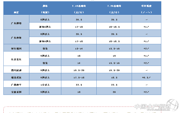 文/圖 杰大飼料、水產前沿實習編輯 李靜 聯合發布 中國水產頻道獨家報道,7月中旬,廣東已有少量加州鱸新魚陸續上市,預計8月中下旬將會出現大量上市,屆時是否會給廣東甚至全國加州鱸市場帶來大的沖擊?全國加州鱸價格是否將會面臨一輪洗牌?具體影響可能要看8月份廣東的出魚數量、規格及品質。小編在此提醒廣大養殖朋友們,天氣好的條件下,舊魚可以選擇適時清塘,以免受到新魚上市帶來的價格沖擊;新魚養殖不要太過心急,高溫天氣管理要穩,投料太猛很容易導致各種疾病暴發,得不償失。 華中,華東等地近期氣溫最高達39-40攝氏度,魚塘表層水溫達37攝氏度以上,同時各地藍藻暴發嚴重;華南地區則雨水頻繁,天氣極不穩定,這對加州鱸是一個嚴峻的考驗,建議有條件的適當補充地下水,加深水位,最好能達到3.5米以上。水質方面,近期病害高發,建議外源水質不好的地區謹慎換水,以調水為主,水體藍藻較多或pH高的魚塘,定期(10天左右)補充乳酸菌調節水質,控制pH不要超標,最好是現場發酵后使用。 病害方面,近期雨水較多水溫較高,寄生蟲開始明顯增加,一開始由中華錨頭蚤、孢子蟲引起導致的爛嘴爛尾只有個別幾條死魚,但如果沒有重視及早治療,不僅會導致加州鱸攝食量大幅減少,后期嚴重時還會引起大面積爛身病害,導致加州鱸大量死亡,7-9月需要養殖戶定時殺蟲預防,及時發現蟲害應盡早合理治療。每年高溫時期都是養殖加州鱸的難關,注意調節好水質,保證溶氧充足,定期預防病害。祝各位養殖戶朋友順利渡過難關,喜迎豐收! 各區域本周與上周出塘價對比: 廣東順德:舊魚存塘極少,只有零星幾塘舊魚未清塘,8兩上規格20.5元/斤。目前在順德有個別養殖密度比較疏的魚塘新魚上市,但數量極少,6兩上18-18.5元/斤,要1.1斤頭,但因為水溫較高,部分達到上市規格的魚塘還沒有開始出魚,主要擔心這段時間賣魚風險極高。隨著下月新魚逐漸上市,價格預計會有所回落。 廣東南海:沙頭舊加州20.5元/斤,與上周持平,主要市場需求量減少,舊魚每天收購量比前段時間減少很多,目前南海沙頭舊魚還有40塘左右存塘,預計到下月初會較多人考慮出魚或清塘,預計后市價格上升空間較小。 浙江湖州:統貨報價15.5-16元/斤。近期持續高溫,湖州地區存塘量也很少,幾乎出魚的養殖戶都是選擇賣統貨,避免挑標魚后出現大量損耗的風險。 江蘇吳江:吳江地區9兩上的報價是19元/斤。雖然有這個樣的價格,但是選擇出魚的養殖戶也幾乎都是賣統貨,而統貨的價格就根據打樣,魚塘里9兩上的成數來定價。目前大部分收購商品魚的碼頭已經開始休息。因為高溫季節,拉出去的商品魚,運輸過程中損耗太大。 四川成都:本周價格同上周依然持平,19.5-20元/斤,升幅速度減緩,這個價格已維持1個多月,同去年同期相比高2-3元,養戶多在觀望,預計還有上漲空間。 湖北武漢:9兩上今天報價18.5元/斤,比上周有所升高,但存塘量很少。 廣西南寧:1斤以上22.5元/斤,與上周持平,南寧周邊存塘量十萬斤左右,因為廣東已開始有少量新魚上市,預計后市不會再有明顯上漲,養殖戶出魚意愿增強。 安徽青陽:8兩以上20元/斤,與上周相比漲幅明顯,而且抓魚規格要求也沒有那么嚴格了。因為安徽地區近期溫度比較高,出魚時損耗較大,一般一網大小都抓走,每次出魚數量不多。高溫還會維持一段時間,預計魚價不會有太大波動。 公告 中國水產頻道從2017年開始收集和發布加州鱸報價及供求信息,發布的信息將會經過嚴格審核,有興趣提供報價或發布供求信息的可以掃描下方二維碼與筆者聯系(請注明地區+姓名+關注品種)。 征稿啟事:本欄目從即日起,誠征關于加州鱸種苗、飼料、養殖技術、病害及預防、案例分析等原創稿件,一經采用,有稿費酬謝! 投稿郵箱:sunshine@fishfirst.cn 轉載聲明 本文為“水產前沿”獨家稿件,版權合作,敬請聯系wx@fishfirst.cn。 |