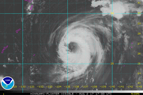 第5號臺風“奧鹿”最新消息: 葵花-8號衛星2日16時50分攝得的奧鹿的臺風眼 葵花-8號衛星3日08時20分攝得的奧鹿的臺風眼 3日08時,“奧鹿”中心位于北緯27.3°,東經134.7°(距離日本東京南偏西方向約1045公里),中心最低氣壓950百帕,近中心最大風速45米/秒(14級風,強臺風級)。 預計,“奧鹿”將以每小時10-15公里左右的速度向北偏西方向移動,強度變化不大。 奧鹿的動態云圖(時間段3日1時00分至7時30分),奧鹿今晨開始進入眼墻替換過程。 昨夜今晨,“奧鹿”開始進入眼墻替換過程,待此完成,它的強度有望再度拔高。目前預計它將于6號前后進入我國東海海域,隨后在128°附近北上,在達到最西點(也就是轉向前),它的強度將達到最巔峰,可能成為今年西北太平洋首個超強臺風。 目前,“奧鹿”已進入它生命史的第13天,未來五天內,它仍將活躍在西北太平洋。它將很有可能創造近66年來西北太平洋臺風生命史記錄。 中央氣象臺發布的1705“奧鹿”未來移動路徑概率圖 第11號臺風“尼格” 今年第11號臺風8月2日上午生成,3日08時,其中心位于距離日本東京東偏南方向約2565公里的海面上,也就是北緯27.0°,東經164.8°,中心最低氣壓998百帕,中心附近最大風速18米/秒(8級,熱帶風暴級)。 預計,“尼格”將以每小時10公里左右的速度向北偏西方向移動,未來對我國無影響。 中央氣象臺發布的1711“尼格”未來移動路徑概率圖 |