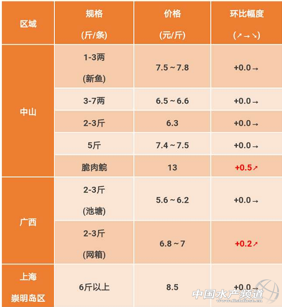 中山區域:當年魚種開始出塘,新魚成活率低,價格持續高位;草魚存塘量少,超市魚價格堅挺;5斤以上存塘量低價格堅挺。
