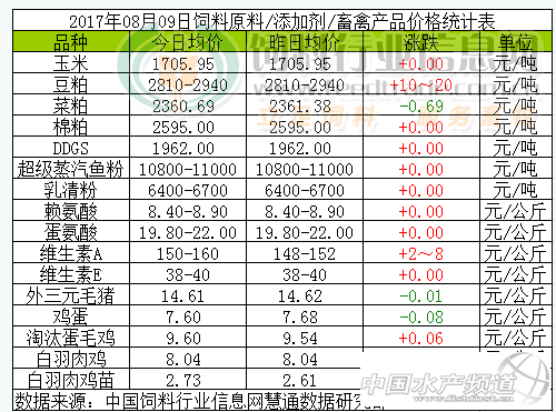 中國水產(chǎn)頻道報道, 市場評論—關(guān)注焦點 玉米: 下周左右開始山東、河南等地新季春玉米將陸續(xù)上市,加之當(dāng)前企業(yè)庫存偏豐,預(yù)計華北玉米價格持續(xù)反彈動力不足。 豆粕: 因作物天氣憂慮提振隔夜美豆收漲。今日開盤電子盤小幅漲跌,連粕下跌,豆粕價穩(wěn)中小漲,南方地區(qū)報價區(qū)間內(nèi)小漲10-20元/噸。8月中旬美國農(nóng)業(yè)部將發(fā)布美豆單產(chǎn)實地調(diào)查報告,在此之前美豆期價等待報告指引。我們認為美農(nóng)報告或進一步下調(diào)美豆單產(chǎn),利多行情,而國內(nèi)國內(nèi)大豆供應(yīng)充足,豆粕需求出現(xiàn)明顯增量的機會不多,為防備報告可能帶來的利多影響,低庫存企業(yè)可在中旬到來之前適度補充庫存。 短期菜粕現(xiàn)貨行情以追隨盤面和豆粕走勢波動整理為主。8-9月份期間,若國內(nèi)豆粕行情實現(xiàn)預(yù)期偏強走勢,則菜粕現(xiàn)貨行情或?qū)⑹芴嵴翊嬖谶m度追高空間。 棉粕: 8月份屬于棉粕供應(yīng)青黃不接最為嚴(yán)重的階段,支撐油廠挺價心理;但養(yǎng)殖業(yè)需求有限,棉粕終端成交并無好轉(zhuǎn)。短期棉粕價格或仍舊維持相對高位整理,市場更多等待新作上市。 DDGS: 下游企業(yè)觀望為主,DDGS走貨不暢,企業(yè)庫存上升,壓制后市DDGS價格。 超級蒸汽魚粉: 近日南北方魚粉市場有所分化:其中南方飼料企業(yè)陸續(xù)提貨,整體出貨速度穩(wěn)定,因而港口庫存有所下降,報價在10800-11000元/噸,成交可議;而北方大連港魚粉到貨量增加,庫存上升,天津港庫存量繼續(xù)低位維持,報價在10900-11000元/噸。截至目前,秘魯超級蒸汽級別魚粉外盤參考報價在CNF1500美元/噸。短期內(nèi)魚粉市場獲提振,廠商挺價意愿濃,但魚粉終端需求、飼料企業(yè)補庫情況仍是市場主要關(guān)注點。 乳清粉: 美盤結(jié)束連跌本周小幅反彈,歐洲市場依然走弱,6月我國乳清粉到港量在2.6-2.9萬噸,環(huán)比增加,國內(nèi)畜禽養(yǎng)殖效益回升,成交有所好轉(zhuǎn),乳清粉市場止跌企穩(wěn)。 賴氨酸: 玉米價格偏弱,本周部分賴氨酸廠家報價回調(diào),近日市場成交偏淡,部分廠家存有庫存壓力,小幅下調(diào)70含量報價,伊品及東方希望于八月停產(chǎn)檢修,賴氨酸市場震蕩整理。 蛋氨酸: 安迪蘇蛋氨酸報價上調(diào)12%,歐洲市場有所上漲,報價區(qū)間在2.35-2.45歐元/公斤,國內(nèi)市場關(guān)注增加,不過供應(yīng)穩(wěn)定,價格穩(wěn)中整理。 維生素A: 此前廠家三季度報價漲幅有限,VA市場震蕩整理,高溫檢修期到來,浙江地區(qū)將接受第四輪的環(huán)保督查,VA市場受支撐,近日部分廠家停報現(xiàn)提價意愿,市場關(guān)注增加,經(jīng)銷商報價有所反彈。歐洲市場平穩(wěn)VA1000報價區(qū)間在26.0-27.0歐元/公斤。 維生素E: 近日能特VE粉投放市場,新產(chǎn)能釋放,VE市場供應(yīng)充足,而高溫檢修期到來令底部受支撐,本周市場穩(wěn)中偏弱。歐洲VE市場疲弱,報價區(qū)間在4.2-4.28歐元/公斤。 外三元毛豬: 今日豬價回落,與我們“豬價上漲過快,此輪豬價上漲將階段性中斷”的預(yù)測一致。局部地區(qū)受當(dāng)?shù)匾?guī)模豬場挺價影響,養(yǎng)殖戶出欄積極性不高,屠宰企業(yè)收購略有壓力,價格持續(xù)小幅上漲,預(yù)計短期內(nèi)生豬價格將以震蕩偏弱調(diào)整為主。 雞蛋: 蛋價穩(wěn)中小幅回落,目前銷區(qū)到貨量有所增加,但產(chǎn)區(qū)庫存不多,預(yù)計蛋價回落空間有限。 淘汰蛋毛雞: 今日國內(nèi)淘汰蛋毛雞價格多數(shù)地區(qū)報價維持穩(wěn)定,其中山東、河南及安徽地區(qū)報價則繼續(xù)偏強運行。 白羽肉雞: 今日國內(nèi)白羽肉毛雞價格漲跌互現(xiàn),全國日均價維持穩(wěn)定,其中遼寧和河南地區(qū)報價繼續(xù)以漲為主,而山東、河北及江蘇等地報價出現(xiàn)下跌。 白羽肉雞苗: 今日國內(nèi)雞苗價格繼續(xù)上漲,且漲幅較昨日加大,其中遼寧地區(qū)報價全面突破3元/羽,山東及河南兩地局部漲幅達2毛/羽或以上。 備注:每日行情匯總各品種報價截止時間為11:30,統(tǒng)計時間的不同會造成當(dāng)日價格有小幅差異可能。 |
