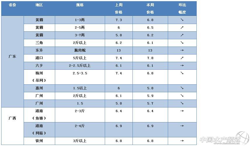 中國水產(chǎn)頻道獨家報道, 養(yǎng)得好,不如賣得好 全國草魚行情解析, 中國水產(chǎn)頻道與您相約每周二 文/水產(chǎn)前沿實習編輯 鄭鵬飛 全國草魚行情分析 今年草魚行情猶如過山車,6月中旬之前行情一路高歌,之后一路下滑,而在最近兩周華南地區(qū)繼華中和華東地區(qū)掉價之后價格也開始下跌。尤其以小草魚價格下跌最為明顯。黃圃1-3兩小草魚連續(xù)兩周出現(xiàn)價格跳水,從最高的8元跌到目前的6.8元,繼上周下跌0.7元之后再次下跌0.5元。湖北湖南地區(qū)由于成魚的上市,后市預計還是不容樂觀。華東地區(qū)價格一路下跌,由于利潤空間明顯減小,魚中收魚的動力明顯受到影響。 黃圃1-3兩草魚價格走勢 華南:小草魚跌、大草魚有下跌勢頭 華南地區(qū)草魚塘頭價 廣東:目前黃圃1-3兩草魚種價格在上周下跌之后再次大幅下跌,目前塘頭價6.8元/斤,比最高價降了1.2元。目前2-5兩和3-7兩存塘很少,屬于有價無市。據(jù)澳華區(qū)域經(jīng)理劉超介紹,價格有可能還會往下走。 據(jù)佛山百洋飼料操進星經(jīng)理反映,大規(guī)格草魚目前價格有下降趨勢,中山4斤以上塘頭價7元/斤,5斤以上7.8元/斤,6斤以上8.3元/斤。其中6斤以上規(guī)格草魚上周塘頭價是8.5元/斤,下降了0.3元。 華中:整體保持下滑趨勢 華中地區(qū)草魚塘頭價 江西:據(jù)了解,江西南昌的1.3斤左右草魚價格相比上周繼續(xù)下跌0.2元,目前塘頭報價4.9元/斤。 湖南:本周湖南草魚價格大部分地區(qū)在5.8-6元/斤之間,部分地區(qū)下跌明顯,常德目前塘頭報價5.5元/斤。據(jù)益陽海大工程師方威介紹,近期湖南天氣不穩(wěn)定,已經(jīng)陸續(xù)有不少池塘出現(xiàn)浮頭現(xiàn)象,嚴重的已經(jīng)出現(xiàn)翻塘,建議近期關注天氣情況和加強水質管理。 湖北:湖北草魚本周價格目前波動不大,大部分地區(qū)只是小幅下滑。不過據(jù)湖北海大技術經(jīng)理介紹,由于新魚上市,后期價格還會繼續(xù)下滑。 華東:價格繼續(xù)下行 華東地區(qū)草魚塘頭價 安徽:本周安徽地區(qū)草魚價格基本保持穩(wěn)定,4-5斤塘頭價為7元/斤。 浙江:據(jù)了解,由于浙江草魚行情一路下滑,目前塘頭價已經(jīng)跌到5.3元/斤,相比上周再次下跌0.2元。受行情影響,魚中的利潤再次被壓縮,魚中收魚的積極性減小。養(yǎng)殖戶目前賣魚比較困難。 福建:目前福建網(wǎng)箱草魚價格繼續(xù)保持穩(wěn)定,基本維持上周水平。 其他地區(qū) 貴州、重慶:貴州草魚價格相比上周也是有所下滑,從7元/斤下跌至6.8元/斤,下跌0.2元。重慶2-3斤草魚目前塘頭價6.5元/斤,也是有大幅下跌。 北京、天津:北方草魚價格和上周相比整體下降了0.2元/斤。目前平谷2-3斤塘頭價6.8元/斤,天津2-3斤塘頭價6.6元/斤 友情提示 從往年的草魚行情來看,每年這個時間價格都會出現(xiàn)下滑。但是漲和跌只是反映一種趨勢,真正能否賺到效益關鍵還要看養(yǎng)殖戶自己的規(guī)劃和管理。據(jù)了解,華中大部分地區(qū)3斤左右草魚的養(yǎng)殖成本在4元左右,所以只要合理安排養(yǎng)殖節(jié)奏和賣魚計劃,目前的價格還是可以保證盈利的。對于存塘較高的養(yǎng)殖戶不要過多依賴后期價格的上漲。因為從事草魚養(yǎng)殖的都知道,當存塘量接近或者超過頂塘量時,魚就會出現(xiàn)各種問題,例如缺氧浮頭,水質惡化,細菌性疾病等,同時飼料的利用率也明顯降低。近期很多魚塘由于魚的規(guī)格上來,所以存塘量基本都處于高位。隨著天氣的變化,這段時間的養(yǎng)殖風險相對提高。上周湖南很多池塘已近出現(xiàn)翻塘事故,出現(xiàn)這種情況到底是天災還是人禍?其實,天氣是直接原因,但是如果對魚塘足夠了解,也是可以及時避免這樣的事情發(fā)生的。建議根據(jù)池塘條件合理安排賣魚,對于減小風險非常有必要。 |