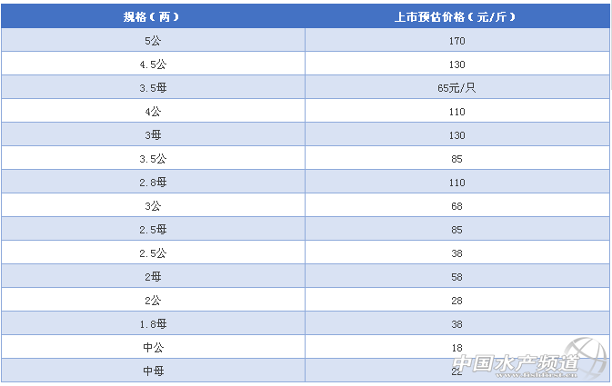 各地的河蟹市場都即將開盤,一些商行對今年河蟹市場的行情走勢有所分析,放出了河蟹上市的預估價格以供大家參考。