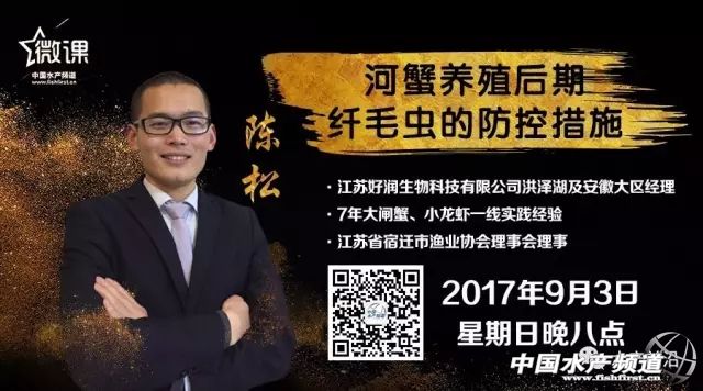 中國水產頻道獨家報道, 文/圖 中國水產頻道 周雙艷 河蟹養殖后期纖毛蟲的防控措施 這是“中國水產頻道公開課”第36期在線課程 直接發送回復“036”報名 2017年9月3日(周日)晚20:00 準時語音直播 報名后課程可永久回聽,聽無限次。 眼看馬上就要進入到河蟹上市的時候了,河蟹養殖戶基本上都知道如果這個時候河蟹被纖毛蟲固著的話,不僅體質會變差,而且賣相也會極其的差,從而使得難以銷售或被迫降價銷售。 少量的纖毛蟲固著會影響導致螃蟹身體瘙癢,易上網上岸,從而影響河蟹的正常生長; 大量纖毛蟲固著會導致河蟹不能正常蛻殼,固著于鰓部的話會直接導致爛鰓甚至窒息死亡,從而影響河蟹的成活率; 在這個關鍵的時刻,如何避免河蟹纖毛蟲固著而影響河蟹的生長和成活率、從而賣個好價錢呢? 為此,9月3日晚20:00,中國水產頻道公開課堂邀請江蘇好潤生物科技有限公司洪澤湖及安徽大區經理陳松為大家主講《河蟹養殖后期纖毛蟲的防控措施》,以期提高河蟹養殖成功率和賣個好價錢。 趕緊來報名吧! 1次課程,你就能get到 提 綱 1、纖毛蟲的簡單介紹 2、纖毛蟲有哪些危害 3、什么樣的環境易滋生纖毛蟲 4、如何檢測纖毛蟲 5、纖毛蟲病如何預防及處理 導師介紹 陳 松 2012年畢業于淮海工學院 從2010年至今一直深入一線接觸大閘蟹、青蝦、小龍蝦、水蛭等的養殖技術服務與推廣工作,7年來積累了豐富的技術知識與實踐經驗。 現為江蘇省宿遷市漁業協會理事會理事, 泗洪縣實名認證水產養殖工程師, 執業獸醫師, 江蘇好潤生物科技有限公司藥店發展部經理兼洪澤湖及安徽大區經理。 如何報名 本次課程為收費課程 9.99元/人 聽課福利:限時免費(開課前1小時停止) 如何開通免費通道 、匍L按識別下方海報中的二維碼 關注“水產頻道”ID:scqyzz ②關注后在聊天框回復數字“036”報名, 根據提示獲取免費聽課資格(評論區留言無效哦) 注意事項 上課形式 在直播間內,以語音形式直播。報名后課程可永久回聽,聽無限次。 上課時間及收費 2017-9-3(星期五)晚20:00準時開始,開課前1小時停止免費報名,截止后將按9.99元/人付費聽課。 這些一定要記住哦 ▼ 本課程的全部內容 包括:文字、聲音、圖片等 學員只能在中國水產頻道授權下才能使用這些內容 不得擅自復制、篡改這些內容 或創造與內容有關的衍生品 同學,等你噢! |