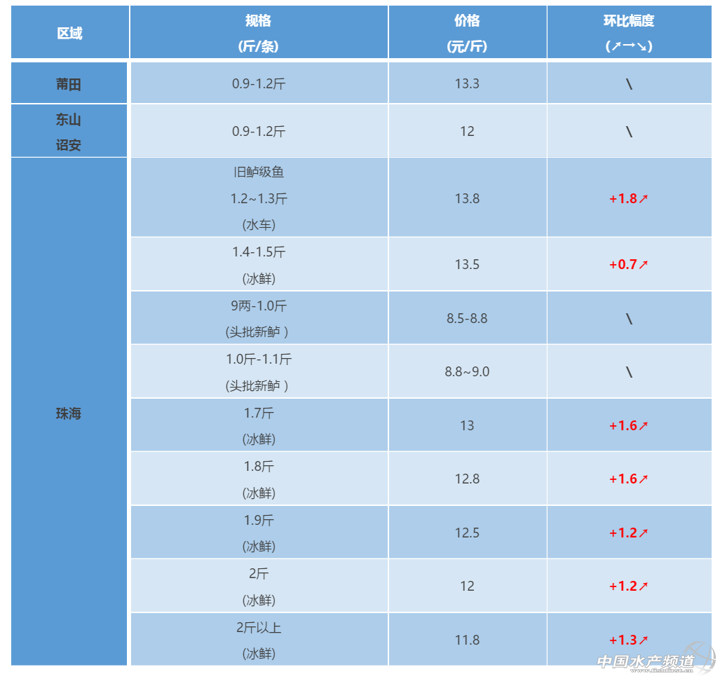 福建莆田、東山、詔安區域:新鱸魚開始上市,達銷售規格魚較少,魚價較好。