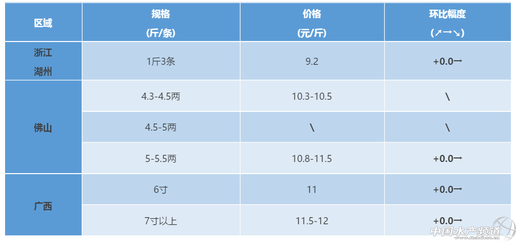 浙江湖州區:目前出魚較多,市場供應充足,發病情況少,整體養殖情況良好。