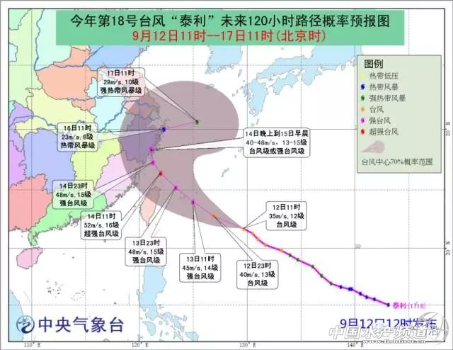 中國水產頻道綜合整理報道, 葵花-8號衛星9月12日08時10分監測到的1718號臺風“泰利”和目前位于菲律賓附近的熱帶低壓(即將加強為今年第19號臺風) 葵花-8號衛星9月12日09時00分監測到的“泰利”內核區的臺風眼和螺旋雨帶 中央氣象臺、美國聯合臺風警報中心(JTWC)和日本氣象廳最新發布的“泰利”未來路徑概率預報 超強臺風“泰利”將于14日-15日福建至浙江登陸 中央氣象臺消息:今年第18號臺風“泰利”的中心今天(12日)上午8點鐘位于我國臺灣省宜蘭縣東偏南方大約970公里的西北太平洋洋面上,就是北緯21.3度、東經130.5度,中心附近最大風力有12級(35米/秒),中心最低氣壓970百帕,七級風圈半徑260-310公里,十級風圈半徑60-100公里。 中央氣象臺9月12日11時發布“泰利”路徑 預計,“泰利”將以每小時25-30公里的速度向西偏北方向移動,強度繼續增強,最強可達強臺風級或超強臺風級(15-17級,48-60米/秒),逐漸向浙閩沿海靠近,并將于14日夜間到15日早晨在在福建北部到浙江一帶沿海登陸(臺風級或強臺風級13-15級,40-48米/秒),也有可能于15日在浙江近海北上、以后轉向東北方向移動。 大風預報:12日14時到13日14時,東海西北部、南海東北部將有6-7級大風,東海南部、臺灣海峽部分海域、臺灣以東洋面將有8-9級大風,其中臺灣以東洋面的部分海域風力可達10-11級,陣風12級以上。 另外菲律賓呂宋島以東洋面熱帶低壓的中心今天(12日)上午8點鐘位于菲律賓馬尼拉以東大約100公里的洋面上,就是北緯14.5度、東經121.9度,中心附近最大風力有7級(16米/秒),中心最低氣壓1002百帕。 預計,該低壓將以每小時10-15公里的速度向西偏北方向移動,并將于明天早晨進入南海東部海面,強度逐漸加強,可能在未來24小時內發展為今年第19號臺風,以后逐漸趨向南海西北部海面。 受其影響,12日14時到13日14時,南海東部海域將有6-7級大風,其中南海中東部部分海域風力可達8-9級。 第19號臺風今日生成,將影響“泰利”發生多種變數 據中央氣象臺氣象專家介紹,目前“泰利”的走勢仍具有多種變數。14日晚上,隨著“泰利”強度的加強,副高將在其壓迫下斷裂成東西兩段,引導氣流的變弱使得“泰利”的移動方向呈現較大不確定性。另一方面,位于其西側的低壓系統未來12小時內可能發展成為今年第19號臺風,“準19號”臺風的強盛也可能對“泰利”產生一定影響。 預計13日至14日,臺灣、浙江、福建等地受臺風影響將出現較強降雨,部分地區降雨量級可達大暴雨以上,請上述地區公眾提前做好相關防范措施,及時關注最新天氣預報預警信息。另外,東海南部、臺灣海峽、臺灣以東洋面等部分海域將有10級以上大風。 “泰利”將掀最高13米狂浪 由“泰利”影響引起的災害性臺風浪過程主要影響我國東海南部、臺灣海峽、臺灣以東洋面,預計9月13日到15日之間,“泰利”中心經過的附近海域將出現7到13米的狂浪到狂濤區,浙江南部、福建北部沿岸海域將出現4到7米的巨浪到狂浪。 海浪數值預報:9月13日開始,臺灣以東洋面、東海南部、臺灣海峽將出現一次狂浪以上過程 9月13日到15日,福建和浙江沿海將出現一次臺風風暴潮過程 雙臺風組團影響華東、華南,杜蘇芮或15日登陸粵西或海南 據中央氣象臺臺風專家介紹,目前來看,第18號臺風“泰利”的路徑預報較前期調整較大,北調明顯,加上其西側低壓的發展,在多因素的制約下,兩者未來的發展形勢具有不確定性。 其一,雙臺風相互作用,組團影響變數大。“泰利”西側即將生成今年第19號臺風,兩者之間的距離約為1000公里。未來雙臺風之間的相互作用,對“泰利”的移速、強度、路徑等方面均會造成一定影響。 其二,“泰利”強度持續發展。由于有利的環流形勢,“泰利”的強度將持續發展,有可能成為今年以來首個超強臺風。另外,準19號臺風未來在南海海域強度也可能達到強臺風級。 其三,雙臺風風雨將影響多地。最新預報顯示,“泰利”和準19號臺風將分別于14日、15日登陸或影響華東、華南地區。受雙臺風影響,臺灣、浙江、福建以及廣東、海南等地將有較強降雨,我國東部和南部海域及沿海將有大風,強風影響時間長。 專家建議請臺灣、福建、浙江、上海等地的公眾及時做好各項臺風防御措施,加強防范暴雨可能引發的城市內澇、山洪、滑坡等災害;沿海地區需做好漁船和海上作業人員回港避風、沿海旅游人員轉移工作。 截至9月12日,西北太平洋及南海已有18個臺風生成,在這之中,今年登陸我國的臺風已有7個臺風(苗柏、洛克、納沙、海棠、天鴿、帕卡和瑪娃),比多年同期平均(5.3個)偏多1.7個。 據統計,今年臺風的生成呈現出階段性集中的特點,其中7月份有8個臺風生成,追平歷史上7月份臺風生成個數最多的記錄。 兩個臺風會去哪?雙臺互旋變數大,風雨將影響多地 中國天氣網消息:最新預報顯示,“泰利”和準19號臺風將分別于14日、15日登陸或影響華東、華南地區。受雙臺風影響,臺灣、浙江、福建以及廣東、海南等地將有較強降雨,我國東部和南部海域及沿海將有大風,強風影響時間長。 臺風監測消息:之前的文章中,一直將菲律賓東部的熱帶擾動97W(后加強為熱帶低壓)稱為攪局者。應該說它對于這個角色扮演的非常不錯,受它的影響,“泰利”路徑持續北調,而它自己未來也將有所突破,很有可能在24小時內加強成為今年第19號臺風“杜蘇芮”。 美國聯合臺