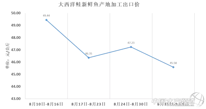 中國水產頻道獨家報道, 文/圖 海鮮指南(seafood-guide) 陳磊 大西洋鮭(三文魚)產地收購價 注:以上產品均已帶頭去臟包裝完畢,質量等級“優質”,匯率按2017年9月13日計算,1挪威克朗兌換0.8327人民幣 大西洋鮭產地收購平均價 上周(9月7日-9月12日),挪威大西洋鮭產地收購價已經連續兩個月出現日此往復變化,上周的價格略有回升,均價上漲1.07元/公斤。其中僅有1-2公斤/條規格的大西洋鮭價格出現了跌幅,其余各規格的價格都有小幅的上升。 兩個月以來,挪威當地的大西洋鮭價格頻繁出現往復變化,可以預計這樣的狀況還將會維持一段時間。 大西洋鮭(三文魚)產地加工出口價 大西洋鮭新鮮魚產地加工出口價 大西洋鮭凍魚產地加工出口價 在大西洋鮭產地加工出口價方面,上周大西洋鮭新鮮魚、新鮮魚片、凍魚和凍魚片的的價格都出現了下降。降幅最大的是冷凍魚片,較上周價格下降3元/公斤。新鮮魚片的價格也較上周下降2.12元/公斤,上周的價格穩定在72.15元/公斤。新鮮魚的價格為近一個月以來最低,價格為45.58元/公斤。 溫馨提示: 以上價格行情由“海鮮指南”統計整理發布,僅供參考。市場有風險,交易需謹慎 。 轉載聲明 海鮮指南獨家稿件,如需轉載請注明來源。 |