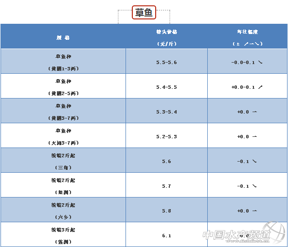 中國水產頻道報道, 流通順暢,價格趨穩 草魚種的價格目前趨于穩定,主要是往外省的流通量逐漸加大,流通比較順暢,后市看穩。統鯇、大草魚和脆肉鯇的價格持續走穩,波動不大,流通順暢。 黃顙魚 供求平衡,魚價持穩 黃顙魚市場出塘魚價維持穩定,雖然市場上大魚存塘不多,但因高溫天氣不便運輸,導致外省車基本不進廣東抓魚,另省外此時有較多魚可出,因此,魚價基本保持穩定。 海水魚 鱸魚舊魚存量少,后市看好 市場鱸魚舊魚所剩無幾,因此魚價處于高位,也導致新魚需求開始增多,具體看魚中與養殖戶議定價格,后市繼續看好。鱸魚新魚符合規格的級魚越來越多,價格趨勢穩定,在舊魚存塘極少且價格居高不下,拉動大規格新魚價格上升(1.2-1.3斤),后續趨勢謹慎看跌。黃花純級魚7.3元/斤,8成中魚8元/斤,不同魚中加減0.1元。中魚存塘較少,后期相對穩定。立魚價格微漲、盲曹價格微跌。 淡水特種魚 大規格生魚嚴重缺貨,拉動統級價格上漲 大規格生魚分級,4斤多頭,2斤上11.5-12.5元,2斤下6.3-6.8元。大規格生魚嚴重缺貨,拉動大魚價格突破12元。大規格生魚價格的帶動下,統級上升0.5元/斤。大魚成數7成左右統級已經發價接近11元/斤。目前市面舊魚偏少,后市價格向好。 |