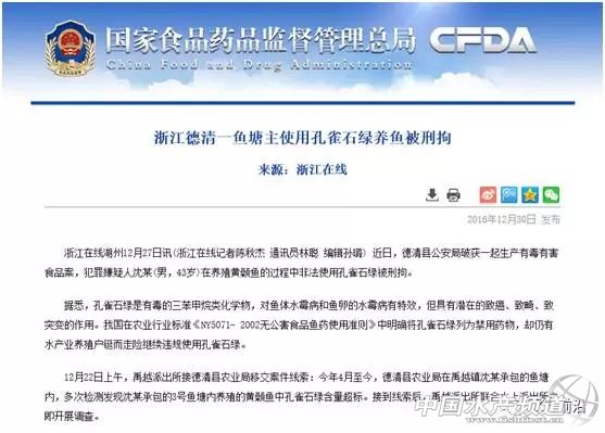 中國水產頻道獨家報道, 文/圖 水產前沿實習編輯 李靜 “各位養殖戶兄弟姐妹:早兩個月我在市場買了幾條銀雪魚,送去酒店,被藥監查到,現在還未結案,好麻煩,禁藥萬萬不能用,害死人!”昨天一大早,筆者打開手機,看到群里有這樣一條信息。 筆者聯系了當事人,原來事情是這樣的。 廣州增城一水產品商戶光哥長期向酒店供應海鮮、河鮮。2017年7月27日,他在某水產批發市場拿了3條銀鱈魚,并像往常一樣供應給某酒店,卻沒想到在一個月之后的8月29日,他收到酒店發來的一份檢驗報告,報告顯示他向酒店供應的3條銀鱈魚檢出孔雀石綠22.4 μg/kg。 據該商戶向筆者反映,廣州某藥監所已對該案立案偵查,目前該商戶已向藥檢所提供該批次銀鱈魚的養殖戶及魚中信息,如果能提供該批次銀鱈魚的檢查合格報告,該商戶即可不必承擔相關責任。由于這批銀鱈魚交易已過去了兩個多月,目前該商戶尚未找到相應批次的檢驗報告,不能自證清白,他也因此被酒店押住7、8兩個月的幾十萬貨款不予結算。 而早在2016年12月30日,國家食品藥品監督管理總局在官方網站發布了一則“浙江德清一魚塘主使用孔雀石綠養魚被刑拘”的案例,文中提到德清縣公安局破獲一起生產有毒有害食品案,犯罪嫌疑人沈某(男,43歲)在養殖黃顙魚的過程中非法使用孔雀石綠被刑拘。(來源:浙江在線) 無獨有偶,今年3月,佛山高明區荷城街道以及順德區勒流鎮兩魚塘在“雙隨機”抽檢中,被查出孔雀石綠超標,市、區多部門聯動依法進行查處,并對區某依法拘留了兩天,并于3月10日上午,依據《食品安全法》和《漁業法》相關規定,針對兩單孔雀石綠超標案,相關部門同時采取清塘行動,對超標的兩個魚塘塘魚進行無害化處理,此次無共計填埋處理烏鱧(生魚)2000斤、叉尾鮰魚4000斤,涉案金額30000元左右。(來源:佛山新鮮事) 孔雀石綠是什么? 1993年起,孔雀石綠開始在我國水產養殖領域使用,但進入人體后其代謝產物具有高殘留和致癌、致畸、致突變等毒性,對人體危害極大,是全國重點打擊的違法添加非食用物質和濫用食品添加劑之一。2002年,我國正式將孔雀石綠列入《食品動物禁用的獸藥及其化合物清單》,同時還頒布了《無公害食品標準水產品中漁藥殘留限量》(NY 5070-2002),明確指出孔雀石綠不得檢出。 相關法律法規: 《中華人民共和國刑法》第一百四十四條 在生產、銷售的食品中摻入有毒、有害的非食品原料的,或者銷售明知摻有有毒、有害的非食品原料的食品的,處五年以下有期徒刑,并處罰金;對人體健康造成嚴重危害或者有其他嚴重情節的,處五年以上十年以下有期徒刑,并處罰金;致人死亡或者有其他特別嚴重情節的,依照本法第一百四十一條的規定處罰。 《國務院辦公廳關于進一步加強農藥獸藥管理保障食品安全的通知》第六條 食用農產品和食品生產經營者是保障食用農產品質量安全和食品安全的第一責任人,必須履行食用農產品質量安全和食品安全的主體責任。對在蔬菜、瓜果、茶葉和中草藥材等農產品生產中使用高毒農藥,在水產養殖中使用孔雀石綠、硝基呋喃類、氯霉素等禁用物質,超范圍超限量使用農藥獸藥,違反安全間隔期、休藥期相關要求使用農藥獸藥,未如實記錄或保留記錄等違法違規行為,各地要依法依規嚴肅查處,責任追究到人,涉嫌犯罪的,要及時依法移送公安機關查處。 附水產養殖中的禁藥名單: 除了孔雀石綠,水產養殖中的禁藥還有很多,筆者簡單梳理如下。 1、禁用抗菌類藥物名單: 抗生素類:紅霉素、氯霉素、泰樂菌素、桿菌肽鋅; 磺胺類:磺胺噻唑(消治龍)、磺胺咪(磺胺呱); 喹諾酮類:環丙沙星,恩諾沙星為鰻魚出口日本的一主要藥殘指標; 硝基呋喃類:呋喃唑酮(商品名為痢特靈)、呋喃西林(又名呋喃新)、呋喃它酮、呋喃那斯。 2、抗寄生蟲藥物 孔雀石綠 汞制劑:硝酸亞汞、氯化亞汞、醋酸汞、甘汞(二氧化汞)、吡啶基醋酸汞; 農藥:地蟲硫磷、六六六、毒殺酚、滴滴涕DDT、呋喃丹(克百威)、殺蟲脒、雙甲脒; 注意過量的銅可造成魚體內重金屬積累,而敵百蟲在弱堿性條件下形成敵敵畏,其對人的危害極大。 3、清塘藥物 五氯酚鈉 4、化學促長劑 喹乙醇 5、性激素類 甲基睪丸酮、丙酸睪酮等制劑 6、硝基咪唑類 甲基唑、地美硝唑 以上藥物在水產養殖中均禁止使用(如有遺漏,請在文章下方留言補充),請廣大養殖朋友選擇其他藥物代替,否則將可能觸犯刑法,涉及相關刑事處罰。 |