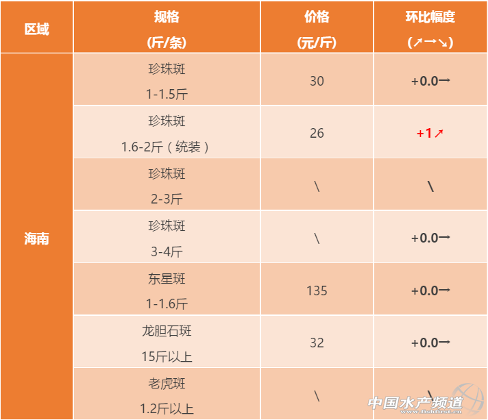 海南區域:價格整體上漲,假期看漲。目前病害集中在腸炎這塊,主要在于魚農急于出魚趕料造成;另外高溫、臺風天氣引起少量死魚,但是影響不大。