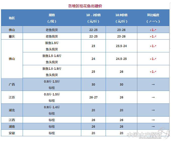 桂花 1、雙節期間,特別是節前出現嚴重交通堵塞,對桂魚的需求量有所影響,市場的價格因為貨源充足和交通等問題,沒有大幅上漲。本周屬于節后消費疲軟期,市場需求量將下滑至節前水平。最近因江蘇一帶蟹塘桂花魚出塘價格偏低,廣東的銷量或將進一步受影響。 2、目前,廣東幾大桂魚主產區的老魚存塘不多,且以偏小規格為主,中桂4成以上的訂魚26元/斤以上塘主才愿意出魚。目前市場以新魚為主,規格以1.2-1.6斤居多,1.8-1.9斤大魚供貨依然緊張,上周新魚價格整體上漲了1元/斤。大部分養殖戶因目前價格不夠理想,魚仔又不是很貴,處于觀望狀態,預計后期廣東的價格會保持平穩或者稍微上漲一點。 3、廣西、江蘇、湖北、安徽等地價格與上周持平,銷量也會回落到正常水平。 【關鍵字】:桂花 塘頭價 水產養殖 |