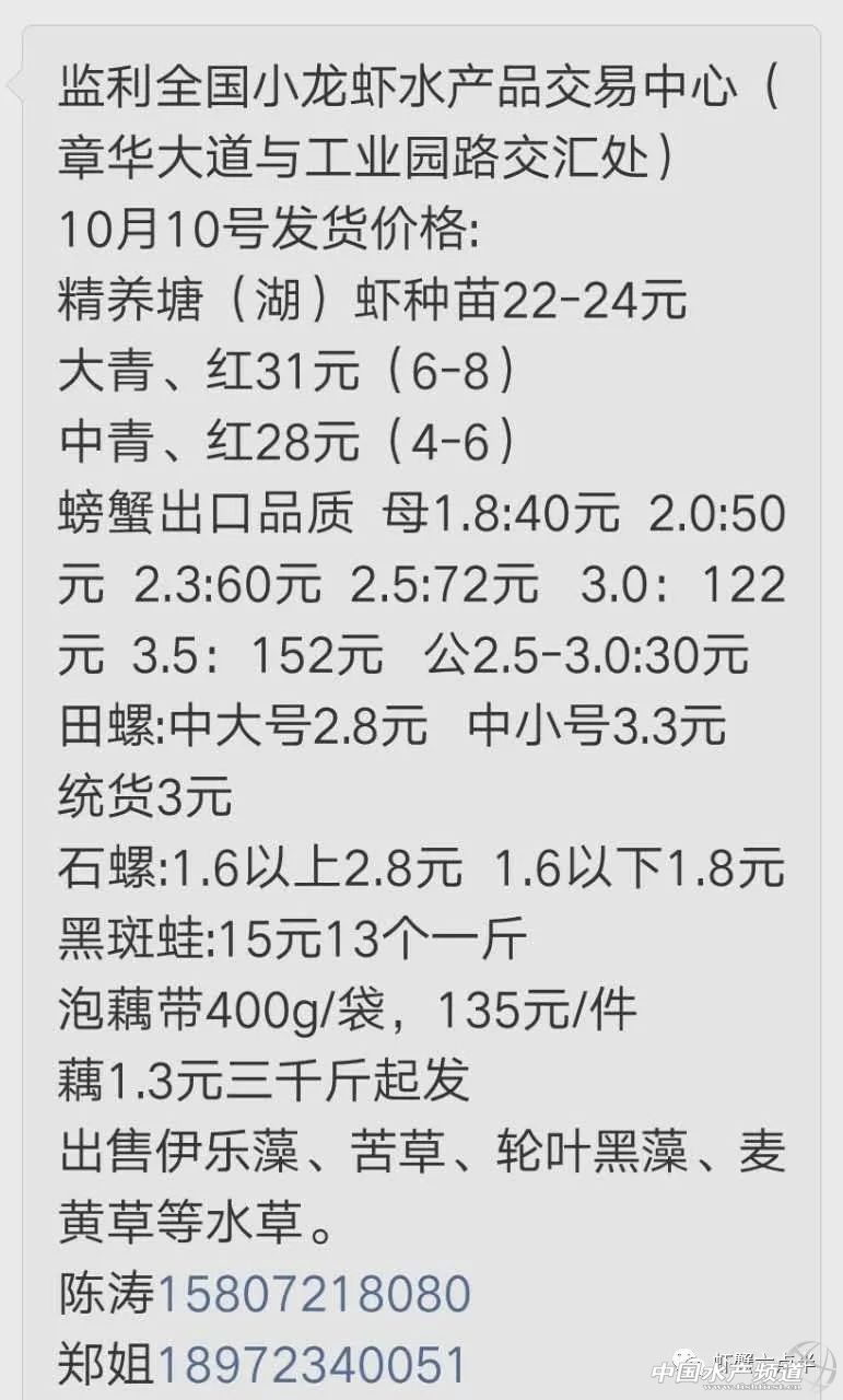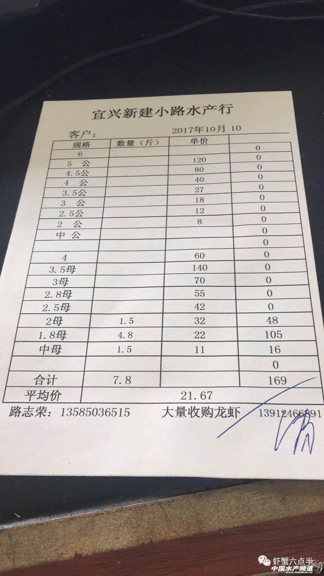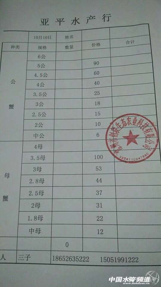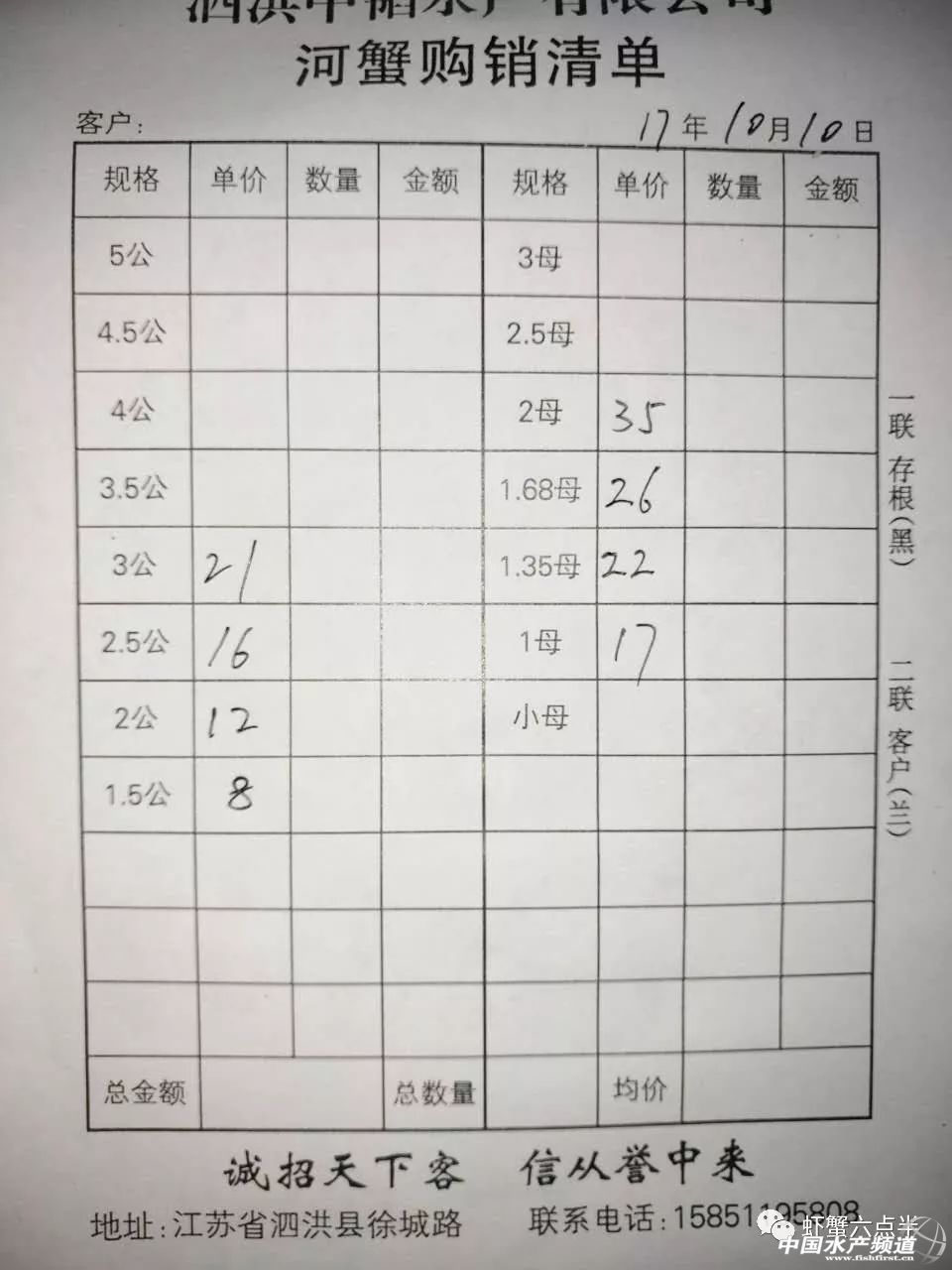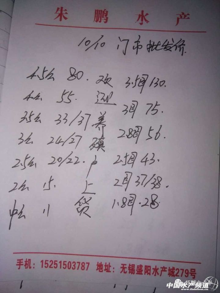 中國水產頻道報道, 白天收蟹,上午出價 品質好會適當加價 大閘蟹 興化和高淳價格差異較大,同規格幾乎相差一倍的價。質量好,規格還可以的養殖戶可以考慮到上海、無錫等地賣螃蟹。 高淳 宜興 興化 泗洪 湖北 無錫批發價 龍蝦價格 |