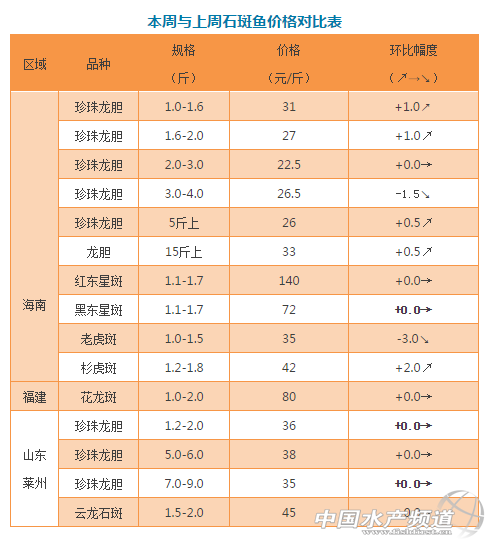 兩斤以下珍珠龍膽上漲了5元/斤以上_-2017年10月12日全國石斑魚塘頭價