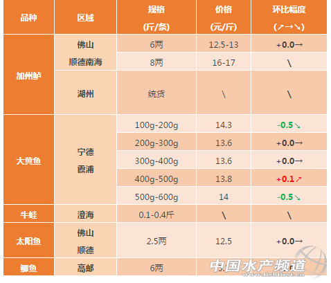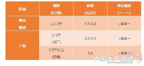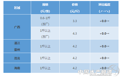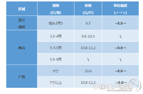 中國水產頻道獨家報道,2017年10月14日對蝦塘頭價養 文/粵海飼料集團 水產前沿 彭曉君 生魚 佛山區域:生魚近期病害主要出血,腸炎,爛鰓,近期季節性轉變引起輕微吐料現象,吃料慢,ph值低,亞硝酸鹽氨氮偏高。 黃顙魚 浙江湖州區:價格穩定,部分魚有病毒性的爛皮病。 佛山區域:西樵目前大魚存塘量較少,新魚頭批個頭大2兩左右,預計在下個月底可以出頭批魚,量相對較少,近期受天氣影響,黃顙魚病害較多,主要出血,腹水,腸炎,爆頭,爛鰓等,亞硝酸鹽氨氮反復偏高,有些塘泡沫多;三水舊魚存塘量少,新魚規格相對較小。 廣西區域:近期氣溫高黃顙魚運輸損耗大,魚販減少收魚,價格不理想,黃顙走量少。 羅非魚 廣西區域:本周羅非魚凍廠價與上周持平,前段時間由于高溫鏈球菌死魚的困擾,大部分客戶選擇出魚止損,目前存塘規格魚較少,凍廠價與上周持平;走市場的鮮活大規格羅非價格有所回落:1.2斤起4.3元(比上周下跌0.3元/斤)、1.5斤起4.6-4.8元/斤(比上周下跌0.2元/斤)。 湛江、海南區域:本周價格維持穩定。 叉尾𫚔 廣西區域:前段時間高溫,叉尾作為粘液比較多的無鱗魚,運輸損耗大,魚販減少收魚,加上價低魚農惜售,目前存塘規格魚較多,價格低迷,很多魚農都計劃養過冬以待好價,目前凍廠和市場的成交量都較低。 其它品種 加州鱸:湖州區域佛山順德老口魚基本出完。南海區域加州1斤頭6兩抓12.5-13元,1.2-1.3斤頭6兩抓13.5元,1.4斤頭6兩抓14.5元,1.5斤頭6兩抓15元,病害爛身、爛尾、爛嘴、有虹彩病毒。 大黃魚:大黃魚價格持續低迷,養殖魚規格主要為小魚(50g以下)及400g以上大魚。大規格大黃魚存魚量較多,本周魚價同比上周下跌0.2-0.3元/斤。 鯽魚:養殖戶出魚正常,連續陰雨天導致魚長勢慢。 【關鍵字】:黃顙魚 羅非魚 塘頭價 水產養殖 |