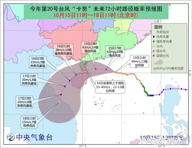 中國水產頻道報道, 昨晚一夜驚心動魄 風在窗外呼呼地吹 臺風中心噌噌地北移 14日22時 “卡努”加強為臺風級別 “卡努”已升級為強臺風 15日11時,“卡努”中心位于北緯20.1度、東經114.2度,湛江市東偏南方向約420公里的南海北部海面上,中心附近最大風力13級(40米/秒),中心最低氣壓960百帕,八級大風半徑范圍約260公里。 15日中午12時,今年第20號臺風“卡努”在距離珠江口正南方向約220公里附近的南海北部海面上加強為強臺風(中心附近風力達14級)。 15日12時“卡努”已升級為強臺風! 10月15日13時“卡努”的中心位于廣東省湛江市徐聞縣偏東方向約365公里的南海北部海面上,也就是北緯20.4°,東經113.7°,中心附近最大風速42米/秒(14級風,強臺風級),中心最低氣壓955百帕。 ▲葵花-8號衛(wèi)星15日12時30分監(jiān)測到的強臺風卡努。 今年第20號臺風“卡努”于昨夜加強為臺風級強度,中央氣象臺今晨發(fā)布臺風橙色預警。預計“卡努”將于16日凌晨到上午在廣東湛江到海南文昌一帶沿海登陸,登陸時強度為臺風級(12-13級,33-40米/秒),最大可能登陸地點為廣東雷州半島。雖然登陸時間基本鎖定明天,但從今天白天開始,海南、廣東、上海、浙江等地都將直接或間接受到臺風“卡努”影響,出現強風暴雨,今天夜間到明天上午將為影響最嚴重時段,中央氣象臺提醒上述地區(qū)的公眾要特別注意,做好臺風暴雨防御工作。 ▲中央氣象臺10月15日12時發(fā)布的卡努移動路徑概率圖 昨日,受臺風“卡努”影響,海南、廣東、浙江、福建沿海地區(qū)已普遍出現大風天氣,局地站點陣風已達到11-12級。今晨,上述地區(qū)的雨勢明顯加強,廣東深圳今日中小學及幼兒園停課。 降水預報:15日08時到16日08時,浙江中東部、上海、江蘇東南部、福建東北部、廣東南部、廣西南部沿海、海南島大部、臺灣島東部等地的部分地區(qū)有大雨或暴雨,其中浙江東北部、廣東沿海、海南島北部等地的局部地區(qū)有大暴雨(100——180毫米)。 ▲ 15日11時-12時,海南全省降雨量實況(圖片源自海南氣象信息服務網) 大風預報:15日08時到16日08時,受冷空氣和“卡努”共同影響,東海大部、臺灣海峽、臺灣以東洋面、巴士海峽、南海大部、瓊州海峽、北部灣以及江蘇南部沿海、長江口區(qū)、上海沿海、浙江沿海、福建沿海、臺灣沿海、廣東沿海、珠江口區(qū)、廣西沿海、海南島沿海將有7-8級大風,其中南海北部和中部、廣東西部沿海、海南北部沿海將有9-11級大風,“卡努”中心經過的海域或地區(qū)的風力有12-14級,陣風可達14-16級。 各地臺風天災亮紅燈 北海大風大浪,一艘無編號無人船漂到外沙險撞岸堤和酒店路橋! 臺風襲擊臺灣 瀑布被強風吹上天! 南澳島一游客遇難,臺風“卡努”來襲請遠離海邊! 提醒建議 “卡努”具有移動速度快,強度將持續(xù)加強等特點,并與冷空氣共同影響,廣東省沿海和南海中北部海面風力大、范圍廣、持續(xù)時間長,需及時采取防御措施。 1.南海中北部和我省沿海海面風力將逐漸加大,海上過往船只和作業(yè)人員要及時回港避風; 2.適逢周末,海島旅游、水上項目就別考慮了,去了也不開。 3. 沿海市縣需做好建筑工棚、人工構筑物、戶外廣告牌、道路綠化樹木等的防風加固工作。 4. 臺風會帶來局地強降水,容易引發(fā)的城鄉(xiāng)積澇、山洪、泥石流、山體滑坡等災害,熱愛登山攀巖、探險、涉水的朋友,不要進入尚未開發(fā)的林場、峽谷、湖泊、水庫、海島等危險區(qū)域。 目 5. 臺風引發(fā)降水,同時配合冷空氣,氣溫還會再降一些,長袖、外套或將“出柜”,避免著涼。 今年第21號臺風也即將生成 熱帶擾動91W于10月12日凌晨在菲律賓東部的熱帶低壓東南側生成,10月15日08時,它的中心位于東經137.9°,北緯7.5°,近中心最大風速20kt(約11米/秒)。 ▲熱帶擾動91W動態(tài)云圖(時間段:10月15日05時30分至15日12時30分) 熱帶擾動91W最近一天幾乎在原地回旋打轉,中心附近的對流有了猛烈的爆發(fā),目前美國聯(lián)合臺風警報中心已經針對91W發(fā)布了臺風生成警報,預計它將很快加強為今年第21號臺風“蘭恩”。 “蘭恩”生成后,將先向西北方向移動逐漸向菲律賓呂宋島東部靠近,但是數值預報模式對于它越過北緯15°線后的路徑分歧較大,它的后期雖然轉向概率較大,但仍不能排除向我國臺灣東部洋面挺進的可能性。 ▲NCEP結合預報對91W后期路徑的預測 另外,值得關注的是,數值預報對于未來這個21號臺風“蘭恩”的強度預測得十分恐怖,它可能成為今年以來最強臺風。 ▲NCEP全球模式預測的91W后期10米風場和海平面氣壓。 此外,南海南部海域未來5天也有可能生成一個熱帶低壓或者臺風,不過目前對于這個熱帶氣旋的路徑和強度分歧較大,仍需繼續(xù)監(jiān)測。 |