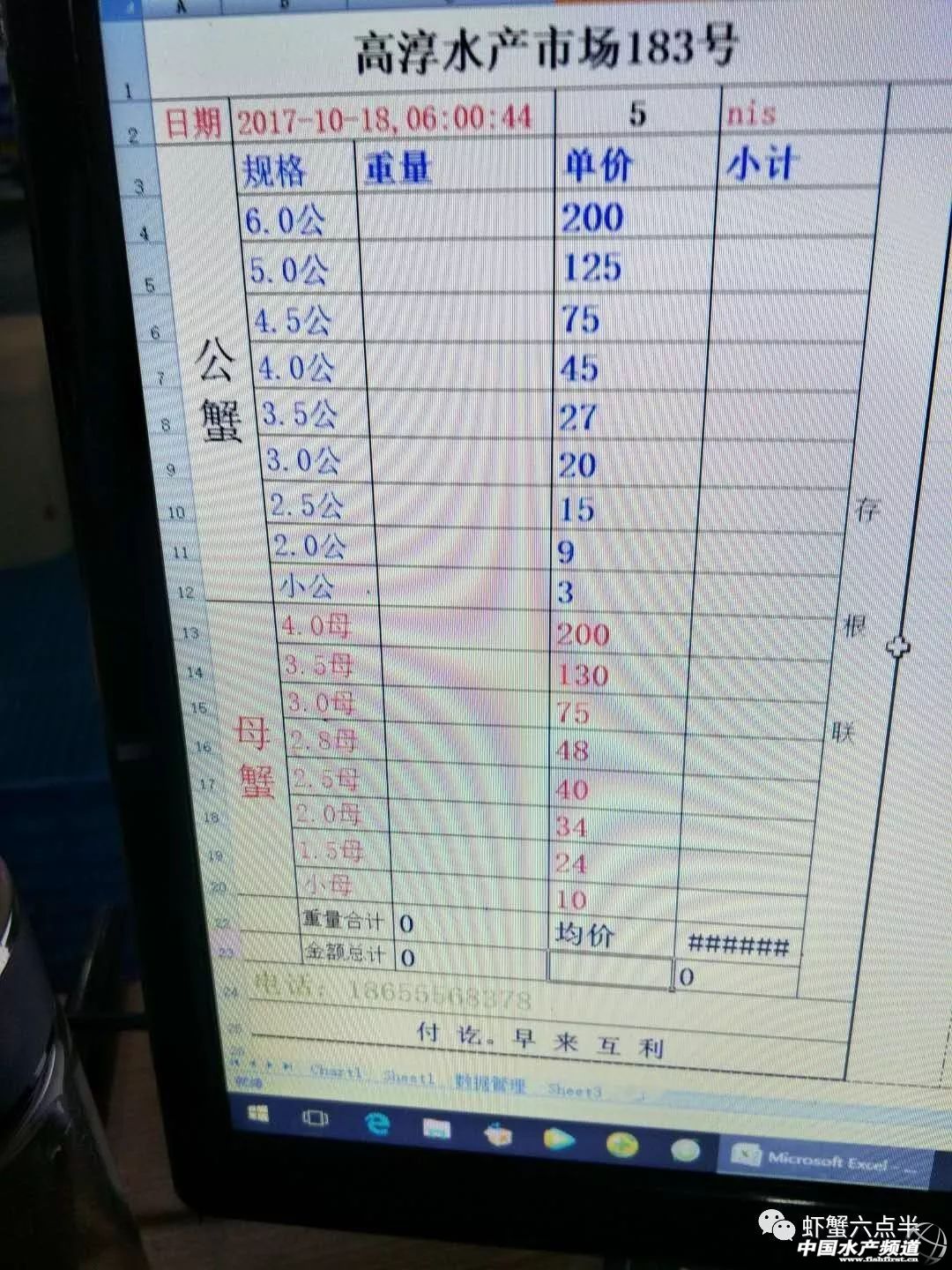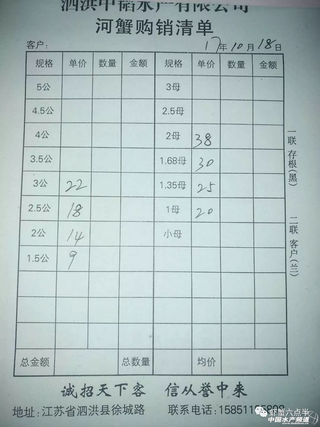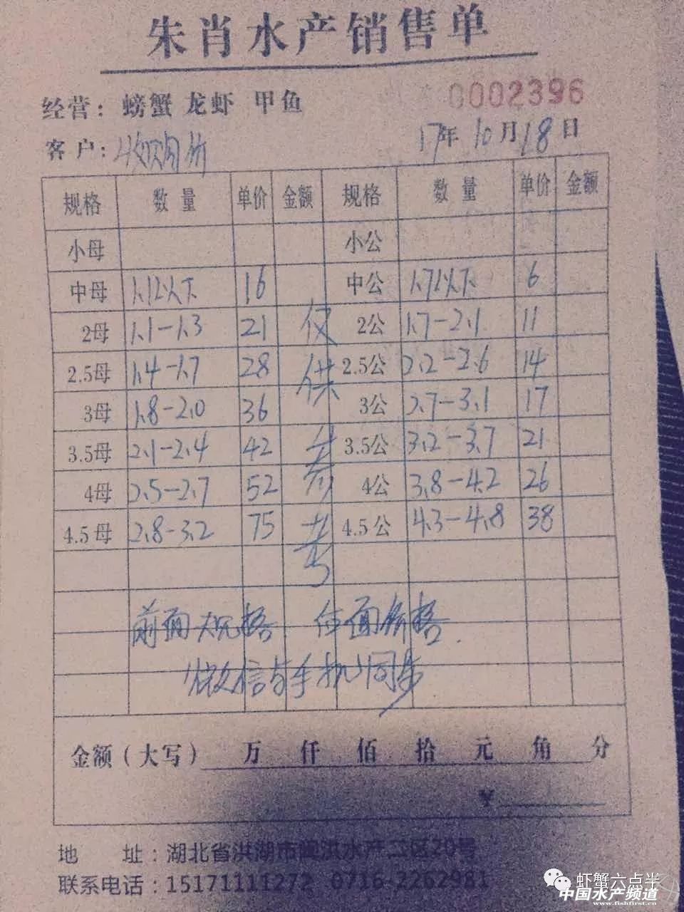 中國水產頻道報道, 大閘蟹 興化和高淳價格差異較大,同規格幾乎相差一倍的價。質量好,規格還可以的養殖戶可以考慮到上海、無錫等地賣螃蟹。 高淳 湖北 興化 宜興 泗洪 山東東營 龍蝦價格 (報價是為了讓養殖戶能早點了解價格信息,根據行情賣螃蟹,盡量賣個好價錢。希望養殖戶朋友也能參與報價,能更快更早的了解當天行情。) |