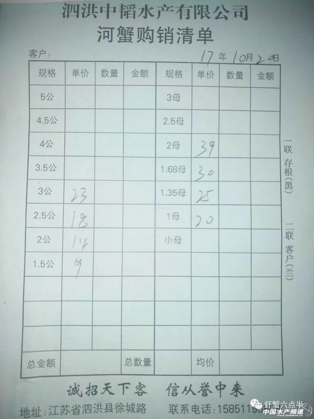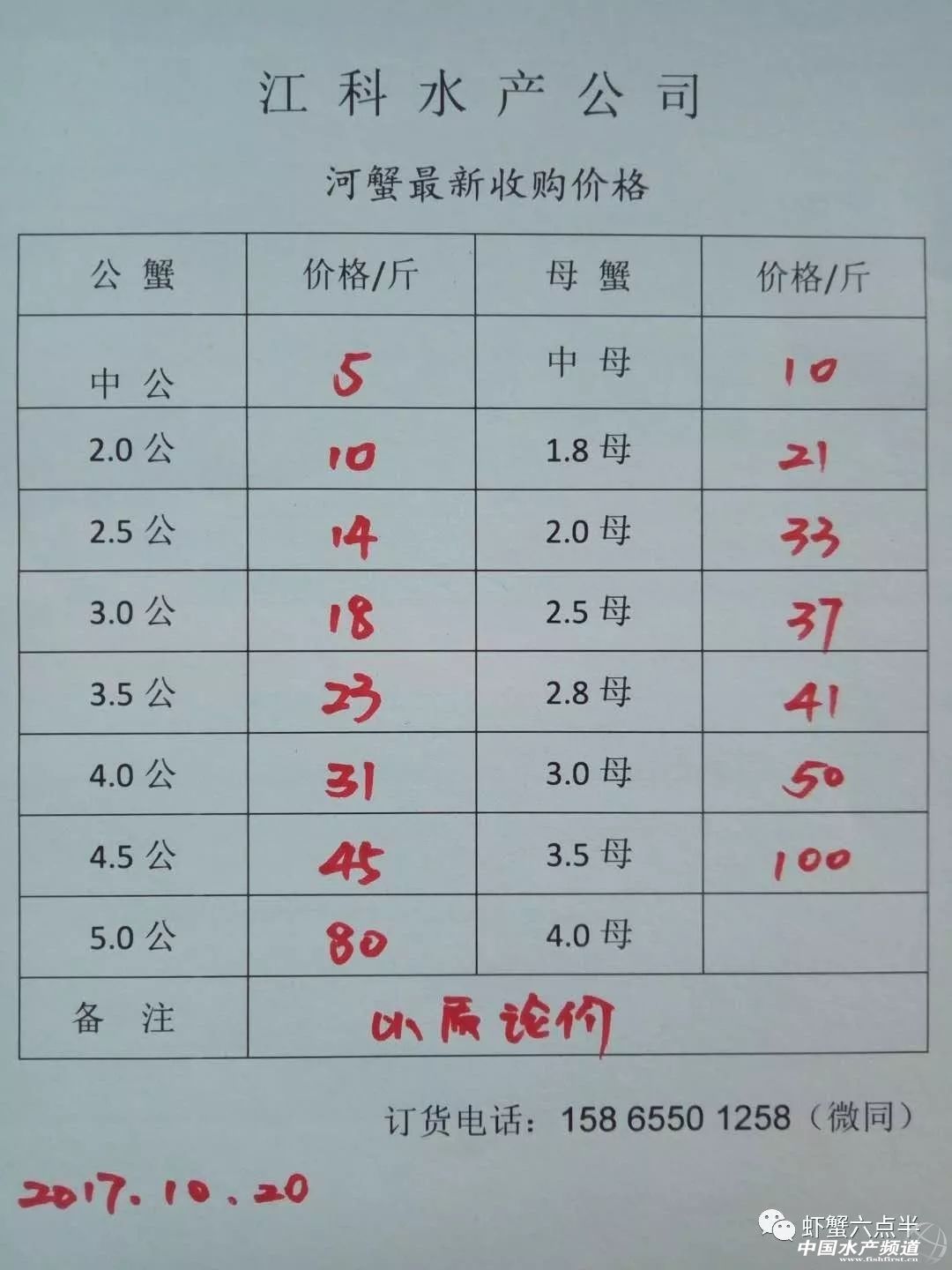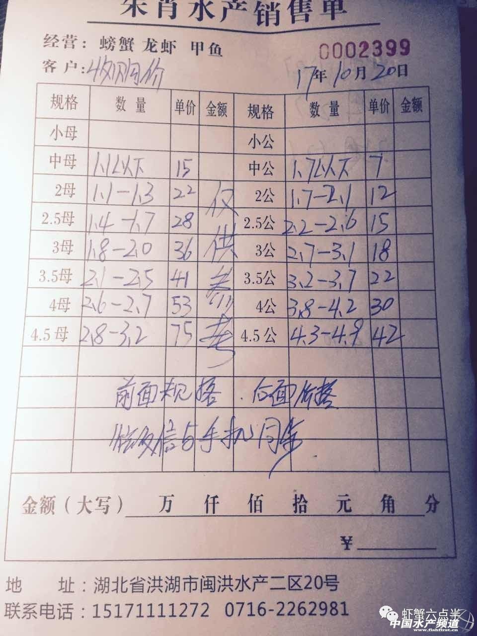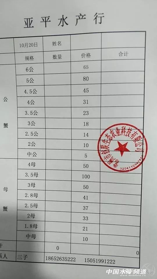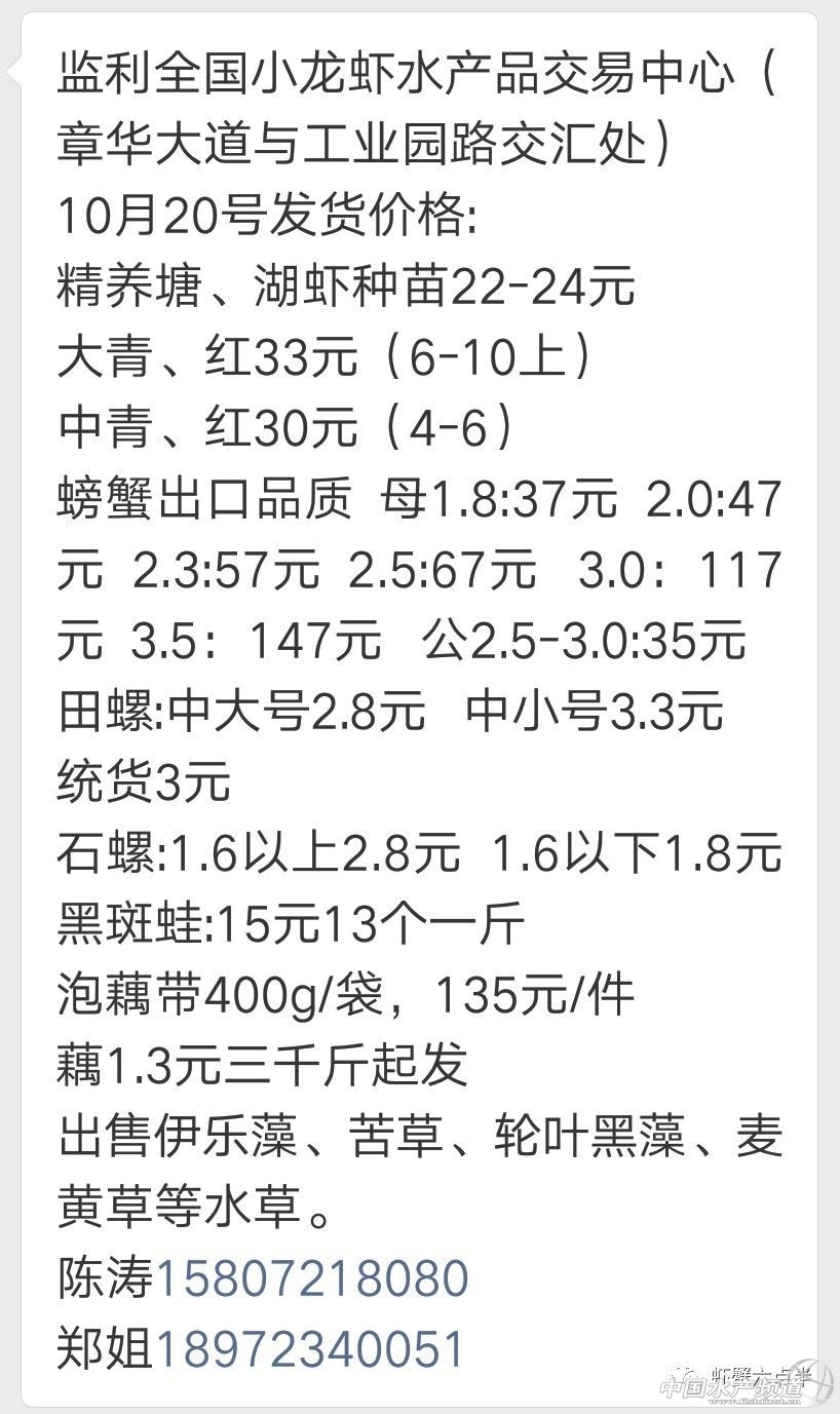 中國(guó)水產(chǎn)頻道報(bào)道, 大閘蟹 興化和高淳價(jià)格差異較大,同規(guī)格幾乎相差一倍的價(jià)。質(zhì)量好,規(guī)格還可以的養(yǎng)殖戶可以考慮到上海、無(wú)錫等地賣(mài)螃蟹。 高淳 湖北 興化 宜興 泗洪 龍蝦價(jià)格 (報(bào)價(jià)是為了讓養(yǎng)殖戶能早點(diǎn)了解價(jià)格信息,根據(jù)行情賣(mài)螃蟹,盡量賣(mài)個(gè)好價(jià)錢(qián)。希望養(yǎng)殖戶朋友也能參與報(bào)價(jià),能更快更早的了解當(dāng)天行情。) |