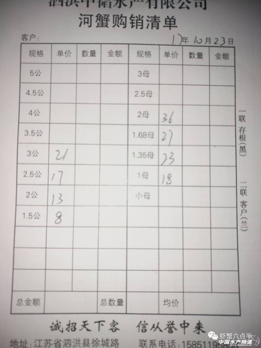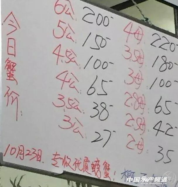 中國水產頻道報道, 大閘蟹 興化和高淳價格差異較大,同規格幾乎相差一倍的價。質量好,規格還可以的養殖戶可以考慮到上海、無錫等地賣螃蟹。 高淳 湖北 興化 宜興 泗洪 龍蝦價格 (報價是為了讓養殖戶能早點了解價格信息,根據行情賣螃蟹,盡量賣個好價錢。希望養殖戶朋友也能參與報價,能更快更早的了解當天行情。) |