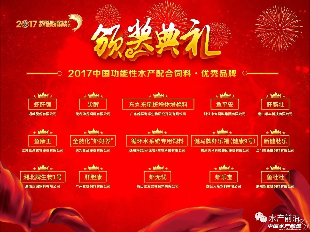 中國水產頻道獨家報道, 創新,往往伴隨著混亂,但混亂,不應該成為抹殺創新的理由。因此,適時對當下市場上的功能料產品進行梳理就很有必要 文/圖 水產前沿 吳佳輝 唐東東 蘇州大學葉元土教授主持頒獎典禮 10月23日晚,“2017中國優秀功能性水產配合飼料品牌”評選活動正式揭開謎底。本次評選活動由水產前沿、中國水產頻道聯合國內權威水產動物營養專家共同推出,歷時近50天,歷經名單征集、微信投票、專家評審等環節,共有28家飼料企業35個產品參選,微信投票數約3萬票,并最終由11位行業重要嘉賓審定,綜合選出了10個“2017中國功能性水產配合飼料·十佳品牌”和15個“2017中國功能性水產配合飼料·優秀品牌”。 “2017中國功能性水產配合飼料·十佳品牌”獲獎名單 廣東恒興飼料實業股份有限公司:益蝦肽 澳華集團:冬藏寶 大北農神爽水產科技集團:神爽發酵功能料 通威股份有限公司:魚倍健 廣東旺海飼料實業有限公司:群豐四季料 南通海大生物科技有限公司:蝦肝寶 天邦食品股份有限公司:酵香型“魚三康” 廣東粵佳飼料有限公司:蝦寶貝 淮安天參農牧有限公司:參寶 山東海博農牧科技有限公司:工廠化熟化蝦料881 中國農業科學院飼料研究所周志剛研究員、中山大學劉永堅教授、中國科學研究院水生生物研究所解綬啟研究員、中國海洋大學張文兵教授擔任頒獎嘉賓。 “2017中國功能性水產配合飼料·優秀品牌”獲獎名單 通威股份有限公司:蝦肝強 茂名海龍飼料有限公司:尖酵 廣東越群海洋生物研究開發有限公司:東丸東星斑增體增艷料 浙江中大飼料集團有限公司:魚平安 唐山禾豐科技有限公司:肝腸壯 江蘇世昌農牧股份有限公司:魚康王 天邦食品股份有限公司:全熟化“蝦好養” 通威拜歐瑪(無錫)生物科技有限公司:循環水系統專用飼料 福建天馬科技集團股份有限公司:健馬牌蝦樂福(健康9號) 江門市新健飼料有限公司:新健肽樂 湖南正園飼料有限公司:湘北牌生物1號 廣州希望飼料有限公司:肝膽康 唐山三發普林飼料有限公司:蝦無憂 煙臺大樂飼料有限公司:蝦樂寶 荊州新希望飼料有限公司:魚壯壯 西北農林科技大學吉紅教授、中山大學田麗霞、云南農業大學鄧君明教授、水產前沿運營總監揭小麗擔任頒獎嘉賓。 對于本次“2017中國優秀功能性水產配合飼料品牌”評選活動,這些企業代表這么說: “這次獲獎是對通威蝦肝強產品階段性研發的肯定和鼓勵,接下來我們將一如既往的深入研發,繼續對蝦肝強產品進行升級。通威作為中國特種水產料版圖中的重要力量,有義務為改善當前中國養蝦困境不斷做出自己的貢獻。” ——通威股份有限公司陳效儒 “2016年開始,南通海大推出了蝦肝寶功能料,經過2年的市場效果驗證,顯著提高了蝦成活率,幫助養殖戶提高了效益。本次獲得“2017年中國優秀功能型飼料品牌”對南通海大是莫大的肯定和鼓勵,南通海大會再接再厲,堅持從養殖痛點出發,憑借海大集團研究院雄厚的科研實力,不斷創新研發,升級功能料產品,為養殖戶創造更高的效益而努力。” ——南通海大生物科技有限公司繆建海 “新希望六和的企業理念是為耕者謀利,為食者造福;我們廣州希望飼料有限公司也是秉承這一理念,近三年來,在走訪養戶過程中,了解到養殖戶對魚的肝膽綜合癥,疾病,運輸等等煩惱重重,公司團隊利用集團技術優勢,不斷的總結與實踐,推出功能飼料,尤其肝膽康產品,為養殖戶解決了營養性肝膽問題。公司將不斷努力,努力打造功能飼料第一品牌!我們希望通過功能料讓天下沒有難養的魚!” ——廣州希望飼料有限公司李賓 “近年來,種苗退化、養殖環境惡化等原因,對蝦養殖成功率低下,能賺錢的養戶少之又少,甚至部分養戶棄養。在這種環境下,行內人士都在思考對蝦養殖的出路,尋求可持續發展之路。而我們粵海在這條路上也作出很多努力。今年廣東粵佳在廣西區域重點推廣“蝦寶貝”,在整體成功率不足三成的情況下,粵佳客戶八成人賺錢。所以,我認為功能料最大的作用不是直接省多少料,也不是在長速上有很大的優勢,而是在成功率上大大提高,成功是最省成本的途徑。功能料能減少環境的壓力,隨著大家環保意識的,接受程度會逐步提高,未來將發展成主流產品。” ——廣東粵佳飼料有限公司鄭釗 “目前養殖密度加大,養殖環境越來越差。水產動物疾病越來越多,特別是蝦越來越難養,我們三發普林作為北方最大的對蝦飼料企業,積極開發功能性飼料是我們的責任,我們主要是和中國農科院飼料所合作,針對目前對養蝦危害較大的白便、空腸空胃、老頭蝦開發了蝦無憂功能性飼料,受到用戶好評。” ——唐山三發普林飼料有限公司趙樹志 “本公司開發功能性飼料的初衷本就是一個互利共贏的產品。養殖生物可以通過功能性飼料攝取更均衡,充足的營養,從而在一個較為壓迫的人工養殖環境中展現一個更健康,穩定均衡的體態。而養殖戶們也能在悉心照顧養殖生物后,獲取一個更優厚的經濟效應。最后飼料公司才能通過優秀的差異化產品獲得口碑與信任。這是一個非常健康的互利共贏循環,也非常難能可貴,因為這個循環,有一個互相信任,堅守本心的大前提。越群海洋非常感謝有這樣一批信任懂理的合作伙伴。接下來越群海洋會繼續努力,不忘初心,以永續發展的大前提攜手與各位伙伴,下學上達。” ——廣