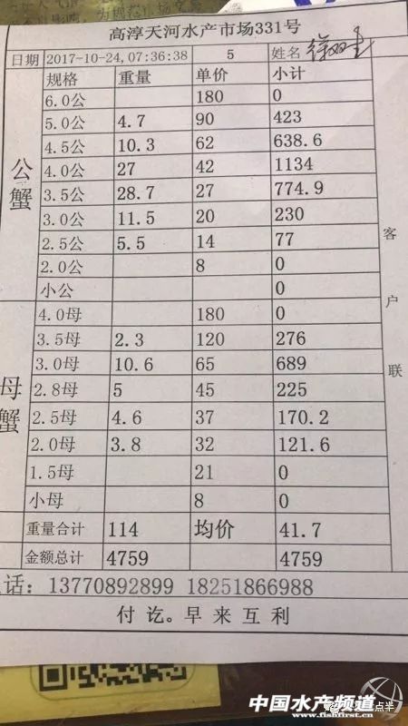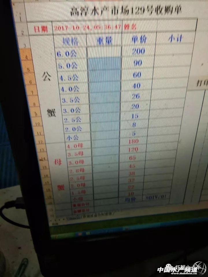 2017年10月24日蝦蟹價格