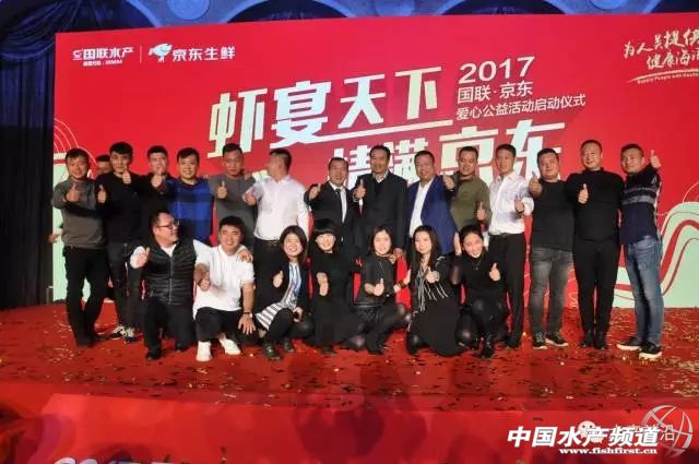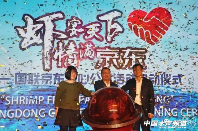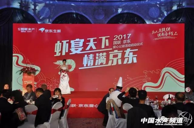 2017年11月1日,青島漁博會開幕的當晚,湛江國聯水產開發股份有限公司(以下簡稱國聯水產)與全球大型電商平臺——京東,共同舉行“蝦宴天下,情滿京東”愛心公益活動。