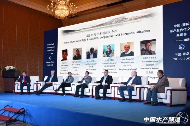 提到國際化,Aquagen全球市場拓展總監Christen Mordal說(左二):“我們專注于基因研究,已經培育了大約5億個三文魚卵,在挪威、智利孵化,種群基因研發機構則設在丹麥。”百洋產業投資集團常務執行副總裁王玲(左三)結合公司基礎情況說:“百洋的羅非魚已經形成了產業鏈,國內主要以養殖羅非魚為主,海外(如非洲)投資建了碼頭、漁船、加工廠、魚粉廠、魚糜制品廠。”廣東恒興集團國際貿易部總經理謝海(右三)也表示,恒興集團打造了羅非魚的完善產業鏈,并在很多方面達到了國際化的標準,可以在其他國家推廣,比如和埃及合作的漁業產業園。