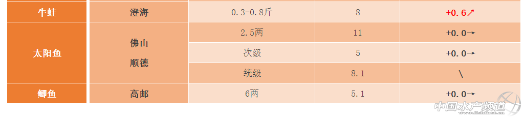 2017年11月4日加州鱸、大黃魚、牛蛙、太陽魚、鯽魚塘頭價行情簡析