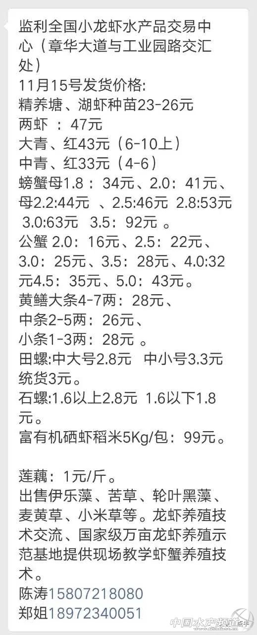 中國水產頻道報道, 2017.11.15 大閘蟹 一般門市都會加價收購,質量好加價更高。 興化和高淳價格差異較大,同規格幾乎相差一倍的價。質量好,規格還可以的養殖戶可以考慮到上海、無錫等地賣螃蟹。 高淳 安徽宣城 湖北洪湖 興化 宜興 泗洪 龍蝦價格 |