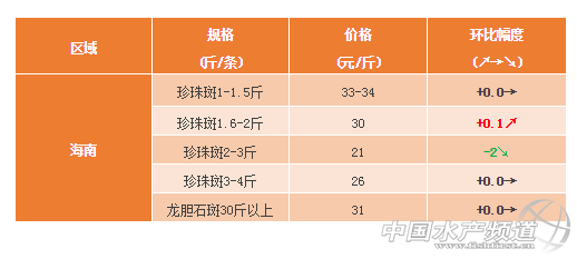 海南區域:氣溫下降,魚的生長速度下降,魚病越來越多,不同規格,價格有升有跌,不穩定。
