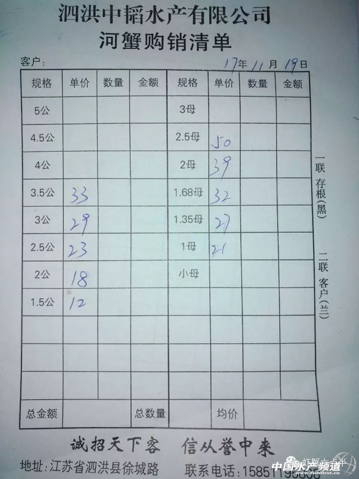 中國水產頻道報道, 2017.11.19 大閘蟹 一般門市都會加價收購,質量好加價更高。 興化和高淳價格差異較大,同規格幾乎相差一倍的價。質量好,規格還可以的養殖戶可以考慮到上海、無錫等地賣螃蟹。 高淳 安徽宣城 湖北洪湖 興化 宜興 泗洪 龍蝦價格 |