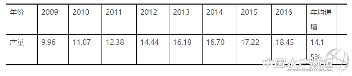 2009年至2016年,全省黃鱔產(chǎn)量由9.96萬噸增加到18.45萬噸,增長幅度為85.24%,年均遞增14.15%。(見表3)