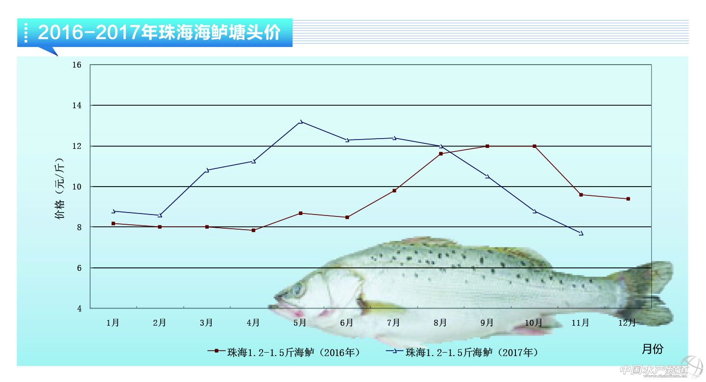 中國水產頻道獨家報道, 截至2017年11月20日各地海鱸塘頭價格: 福建莆田:1-1.2斤規格塘頭價10元/斤。 福建莆田、東山、詔安1-1.2斤規格塘頭價8.8-9.1元/斤。 廣東珠海1.2-1.25斤(頭批新鱸魚)7.2元/斤,1.25-1.3斤(頭批新鱸魚)7.2-7.3元/斤,1.3-1.4斤 (頭批新鱸魚)7.5元/斤,1.4-1.5斤(頭批新鱸魚)7.7元/斤。 福建莆田、東山、詔安區域:本月新鱸魚上市量日益增加,達上市規格魚超過90%。隨著上市鱸魚量的增加,市場價格呈持續的微下滑趨勢,行情低迷,養殖戶出魚意愿較低,持觀望態度有序出魚。 廣東珠海:現頭批魚規格普遍集中1.2-1.5斤,市場要求1.2斤規格以上才能滿足抓魚。上層消費市場淡季,供過于求,導致價格持續波動下降。接近年底結賬期,資金量緊急上升,部分客戶開始拋售性買魚籌集資金,造成了魚價波動。(彭曉君) |