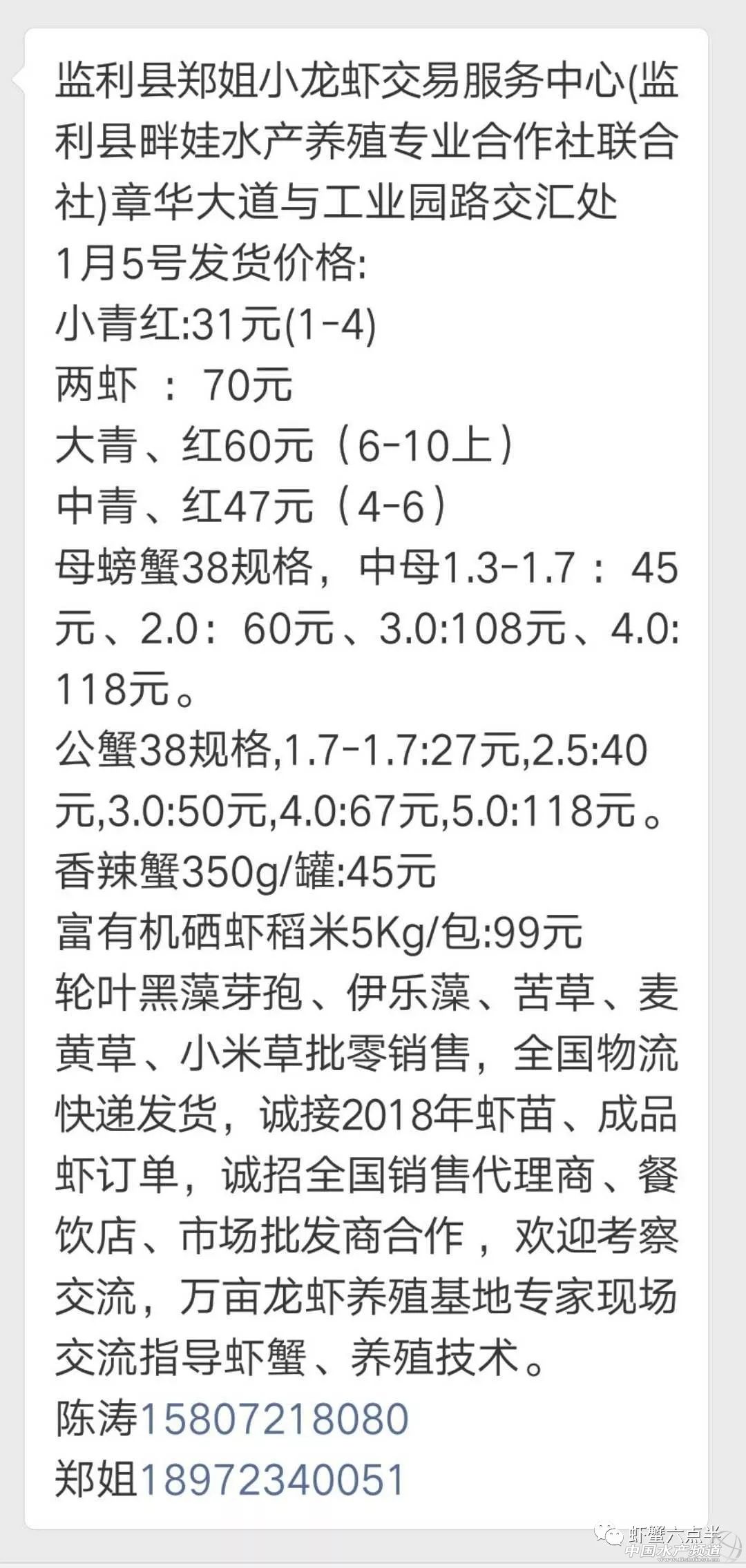 中國水產(chǎn)頻道報(bào)道, 2018.1.5 大閘蟹 一般門市都會加價(jià)收購,質(zhì)量好加價(jià)更高。 興化和高淳價(jià)格差異較大,同規(guī)格幾乎相差一倍的價(jià)。質(zhì)量好,規(guī)格還可以的養(yǎng)殖戶可以考慮到上海、無錫等地賣螃蟹。 宜興 泗洪 湖北洪湖 無為 龍蝦價(jià)格 蟹苗 【關(guān)鍵字】:蝦蟹 價(jià)格 水產(chǎn)養(yǎng)殖 |
