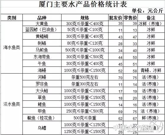 2018年1月7日福建廈門市水產(chǎn)價(jià)格