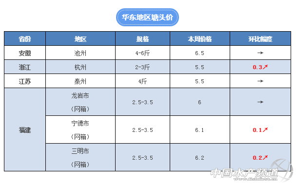 福建:福建地區草魚整體維持小幅上漲的態勢,本周漲幅在0.1-0.2元之間,3斤左右的草魚塘頭價在6-6.2元之間。