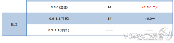 中國水產頻道獨家報道, 金鯧魚 廣西區域:隨著氣溫變冷,金鯧魚存量有所減少,本周金鯧冰鮮價格繼續堅挺,除了1-1.1斤以上規格金鯧冰鮮價格比上周下跌外,其它規格金鯧冰鮮價格繼續保持強勁上揚。雖然漲勢喜人,但目前存魚少,冰鮮成交量低。能走量大的凍品價格已經長時間毫無起色:具體報價:200/300克的8元/斤平;300/400克的8.75元/斤平;400/500克的10元/斤平;500/600克的10.5元/斤平;600/700克的11元/斤平;700/800克的11.5元/斤平。欽防最近一周沒有人出魚,價格無法統計。受低溫影響,欽防地區的過冬魚吃料較少。 海南、陽江、湛江區域:本周價格整體有所上升。 |