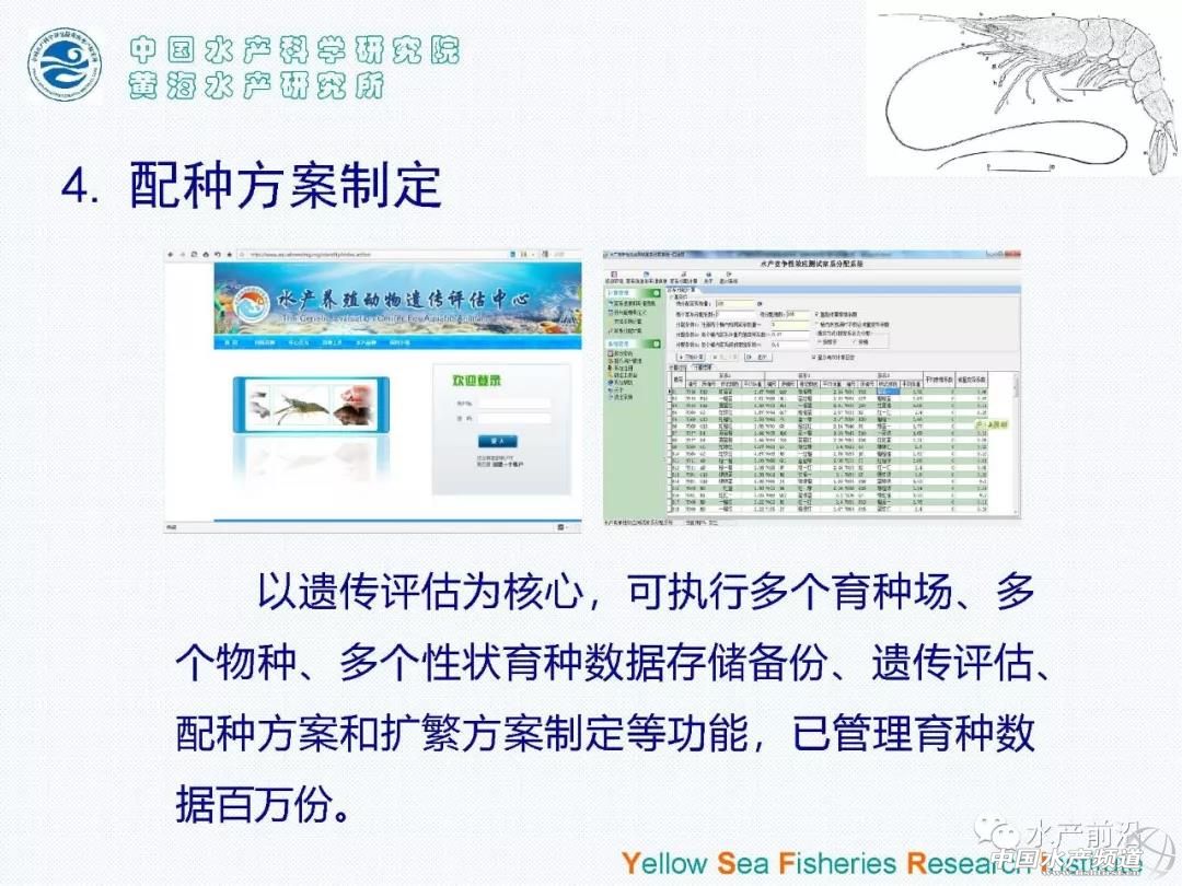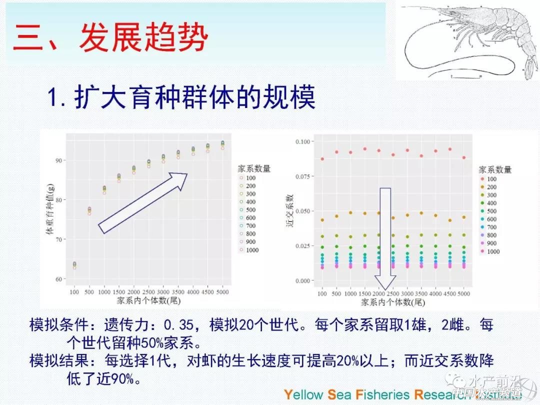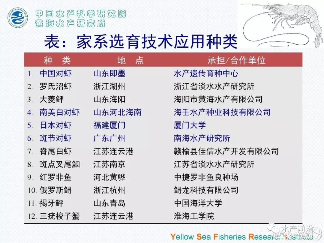 中國水產科學研究院黃海水產研究所 欒生研究員 中國水產頻道原創報道,會前,小編們到全國多個南美白對蝦主養區走訪,眾多蝦農都表示選蝦苗就像在賭博,好壞全憑運氣,排塘率居高不下。是環境變化?種質退化?還是“外國種”不適應國內環境?本土化選育能解決這個問題?會上,中國水產科學研究院黃海水產研究所欒生研究員對南美白對蝦種蝦家系選育研究進展及發展趨勢進行分析,對國內外親蝦的情況進行介紹。 這幾年,正大、科拿灣、夏威夷SIS和新加坡SIS等品種占領了大部分的蝦苗市場。當前,國內種蝦需求量大約是150萬對/年,而我國南美白對蝦種源高度依賴國外,每對種蝦高達1000元、幼體20-25元/萬尾,成本高、不可控。國內對蝦新品種雖然逐步引起大家的重視,但只占了大約5%的比例。一旦出現國外種業公司停止供種的情況,自主苗種品牌就會出現危機。 其實,在傳統育種技術、細胞育種技術及分子育種技術上,我國處世界領先水平。但水產家系育種技術70年代初起源于挪威,一直是我國育種技術研究的空白點。為了填補這方面的空白,2004年6月5日,中挪水產育種合作項目“水產養殖動物多性狀復合育種技術的引進與示范”在中國水產科學研究院黃海水產研究所簽定。 目前,研究機構也在破解“有種、缺繁、少推廣”的產業難題,建立數據庫,制定配種和擴繁方案。 至此,小編不再贅述,附上PPT原件供大家參考,請勿抄襲或盜用報告嘉賓的原創內容,謝謝! |