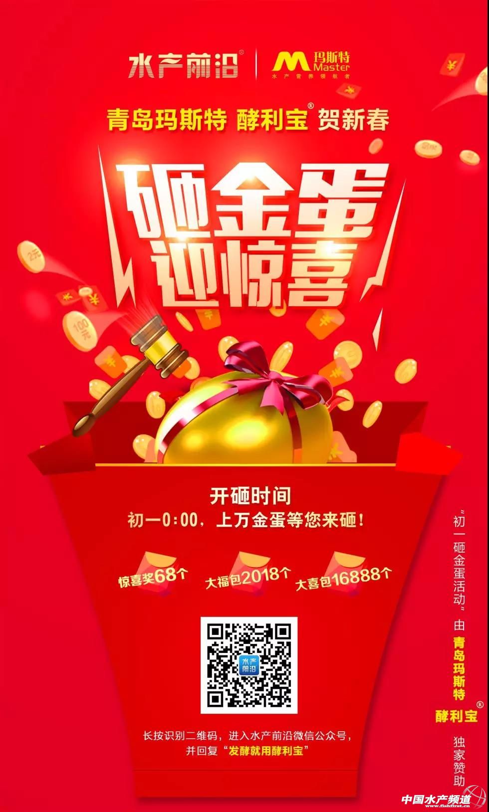 中國水產頻道獨家報道, 攜手青島瑪斯特生物技術有限公司 開啟2018跨年福利活動 上萬枚金蛋等您來砸! 活動參與方式 2月16日(大年初一)00:00—關注“水產前沿”微信公眾號,消息對話框回復關鍵詞“發酵就用酵利寶”,點擊鏈接進入游戲活動; 領獎說明 1、兌獎方式:獲獎者將獲得兌獎口令,根據游戲頁面提示關注“水產頻道”微信公眾號(scqyzz),復制兌獎口令內容并在公眾號對話框中粘貼兌獎口令直接回復,根據提示領取獎品。 溫馨提示:若未能及時兌獎,請妥善保管好兌獎口令(截屏或復制),確保無遺漏;蚍祷刂匦逻M入游戲首頁,在“規則·獎品”處查看“我的獎品”。 2、實物獎品將于工作日2月23日(年初八)由工作人員聯系中獎者發放,手機號碼作為兌獎重要憑證,填寫當真實有效,如若有誤,作廢處理; 溫馨提示:獲得實物獎品的獲獎者務必按照兌獎操作提示填寫完整個人信息,以便工作人員聯系。 3、本活動最終解釋權歸《水產前沿》、中國水產頻道所有。 新春祝福 值此辭舊迎新之際,瑪斯特全體同仁衷心祝愿朋友們新年快樂、健康開心、萬事如意! 第一波砸金蛋活動已開啟,準備好你手中的神錘吧! 活動預告詳情: 砸金蛋贏紅包!水產前沿聯合智龍、瑪斯特、海聯、安進,給您拜年! 除夕砸金蛋贏紅包!廣州智龍生物送你2018年第一波好運氣! 【關鍵字】:青島瑪斯特 紅包活動 水產養殖 |