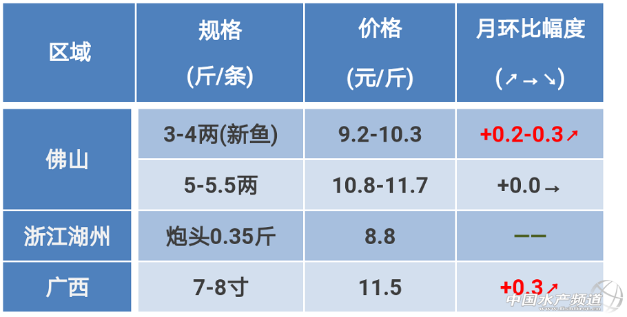 文/ 粵海飼料集團、水產前沿 彭曉君 中國水產頻道原創獨家報道,佛山區域:西樵舊魚存塘量不多,新魚少量出魚,新魚3-4兩價格9.2-10.3元/斤,相對過年前10天,黃顙魚新魚價格下跌了幾毛錢;水溫上升后,吃料逐漸增多,建議注意預防腸炎;病害相對少,部分有出血,水霉,腸炎。 浙江湖州區域:湖州黃顙魚炮頭0.35斤/條,價格8.8元/斤。由于近期價格一直較低,存塘量較大,價格處于低位,無法上漲。 廣西區域:主要由于前段時間春節節慶魚價好,養戶出魚多,目前存塘魚少價較堅挺。 ※上述報價可能會因區域、規格、品質和時間等因素的不同而會產生差異,在此僅供參考。本周月環比幅度價格對比時間為2月3日。 【關鍵字】:黃顙魚 黃顙魚價格 水產養殖 |