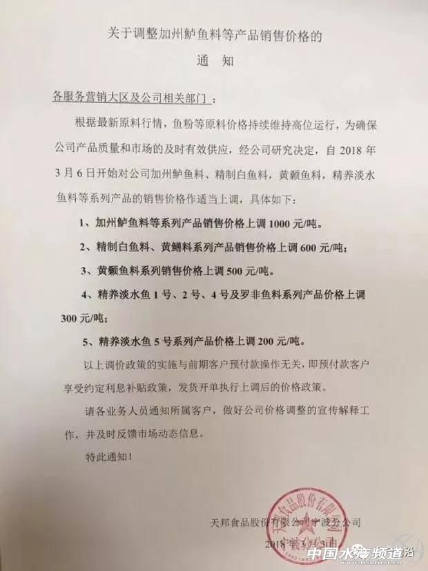 華南市場“淪陷” 昨天,茂名市飼料行業協會公布了飼料價格上調消息,其中浮水魚料上調120元/噸,沉水魚料上調75元/噸。 具體如下: 因原料大幅度上升,為保證飼料產品質量適應市場經濟規律,保障行業健康發展,建議飼料產品價格作如下調整: 一、豬飼料(乳豬料,教槽料上調100元/噸。小、中、大、母豬料、上調75元/噸)。 二、雞飼料(雞料上調75元/噸) 三、鴨飼料(鴨料上調50元/噸) 四、水產飼料(魚料:浮水料120元/噸,沉水料75元/噸) 于2018年3月4號凌晨開始上調。 茂名市飼料行業協會 2018年3月3號 今天,茂名果然多家料企緊跟漲價的節奏,據悉有茂名通威、茂名六和、茂名中糧,而明天或者后天......或會有更多的飼料企業漲價。 具體如下: 茂名通威九鼎飼料有限公司漲價通知 因原料大幅度上升,為保證飼料產品質量適應市場經濟規律,保障行業健康發展,飼料產品價格作如下調整: 豬飼料(乳豬料,教槽料上調100元/噸。小、中、大、母豬料、上調75元/噸)。 雞飼料(雞料上調75元/噸) 鴨飼料(鴨料上調50元/噸) 水產飼料(魚料:浮水料120元/噸,沉水料75元/噸) 于2018年3月4號凌晨開始上調。 茂名通威九鼎飼料有限公司 2018年3月3號 茂名六和飼料有限公司漲價通知 因原料大幅度上升,為保證飼料產品質量適應市場經濟規律,保障行業健康發展,對飼料產品價格作如下調整 一、豬飼料(乳豬料,教槽料上調100元/噸。雙喜小豬、生物仔豬上調100元/噸、其他小、中、大、母豬料、上調75元/噸)。 二、鴨飼料(鴨料上調50元/噸) 三、水產飼料(魚料:浮水料120元/噸) 于2018年3月4號凌晨開始上調。 茂名六和飼料有限公司 2018年3月3號 華東再有大動作 今天,華東市場仍然有大動作! 接力昨天,甚至前幾天的火力漲勢,今天又有一大波飼料企業漲價,有浙江恒通、天邦寧波、浙江中大(3月1日公布漲價)、浙江鴻利(2月28日公布漲價)、浙江聯興(2月28日公布漲價)等料企。涉及品種囊括魚、蝦、蟹、、蛙、苗料,其中仍以加州鱸魚料、大黃魚料、大黃魚苗料漲價最高,達1000元/噸。 具體如下: 飼料猛漲?魚蝦價更要漲! 面對飼料價格突飛猛漲,最難受糾結的就是養殖戶,這意味著他們要為養殖付出更高的成本。 但值得欣慰的是,目前全國南北的魚蝦價格也都在持續大幅上漲。 【關鍵字】:飼料 飼料漲價 水產養殖 |