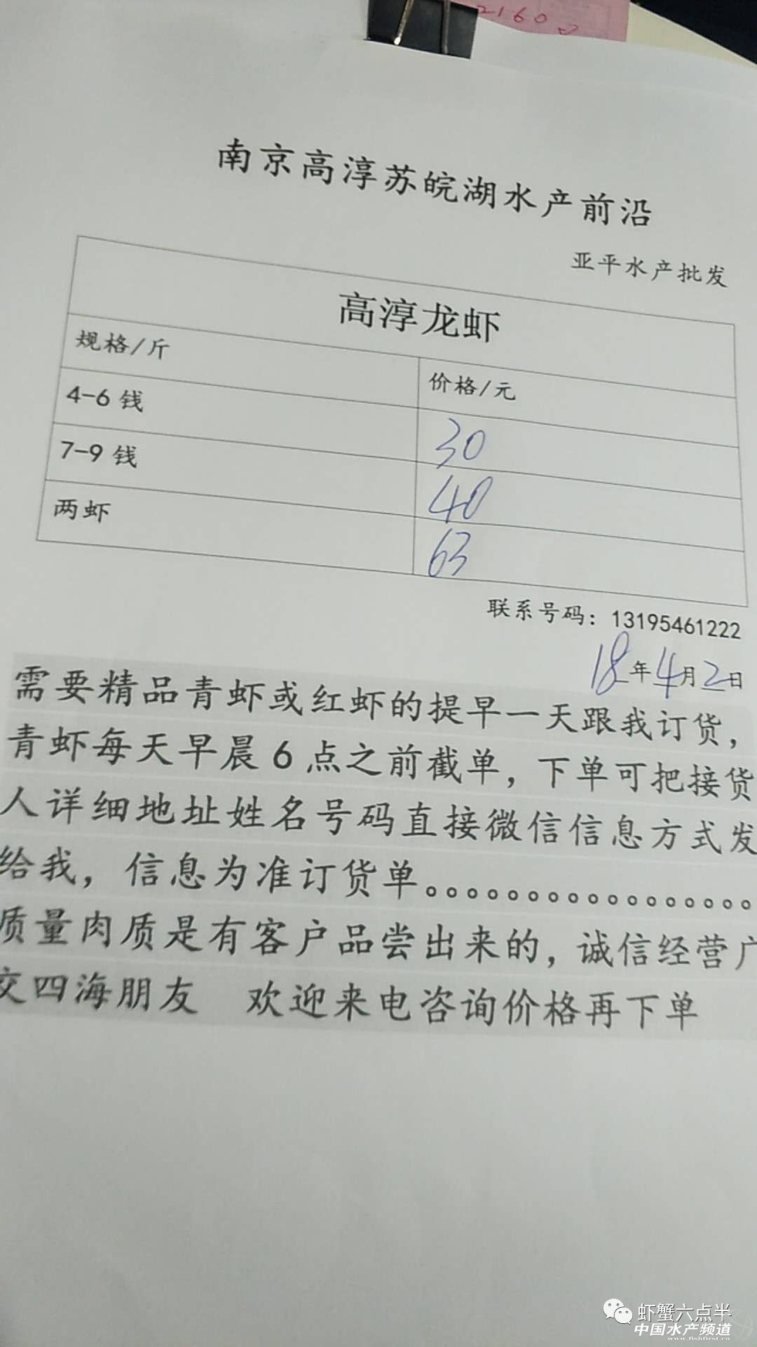 摘要: 2018年4月2日蝦蟹價格