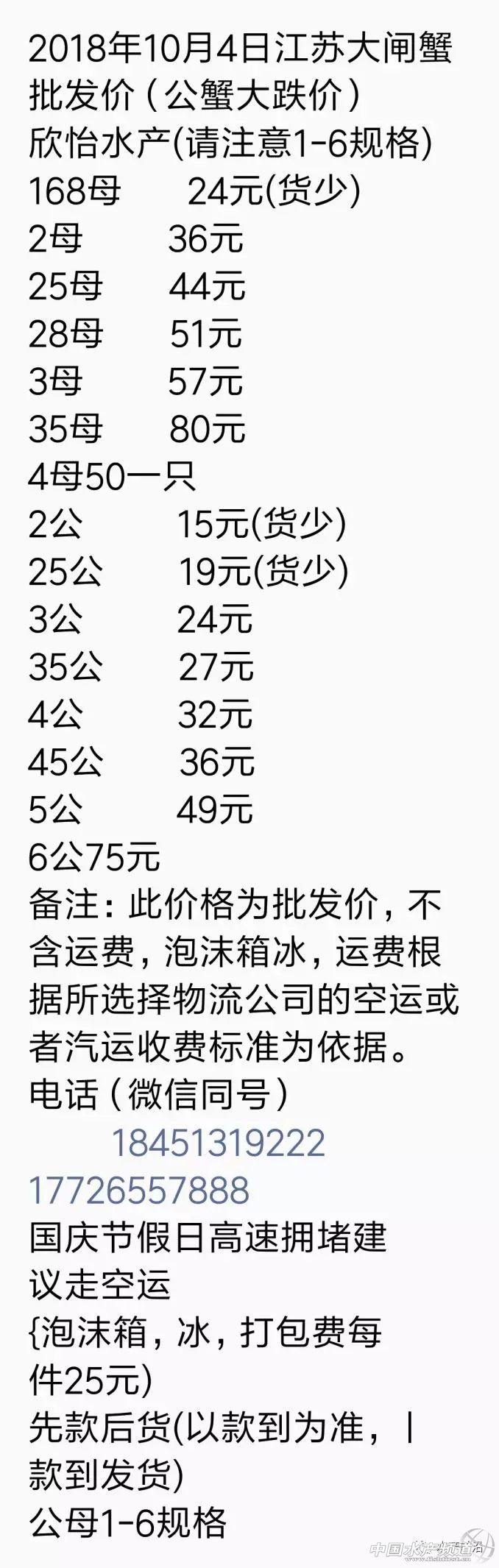 中國水產頻道原創報道,本周公蟹保持平穩,母蟹基本在跌。28日興化母蟹暴跌。預測下周蟹價保持平穩