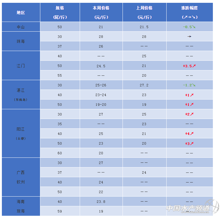 廣西:本周蝦價30頭蝦27元/斤,40頭24元/斤,50頭22元/斤。廣西地區存塘量也出現不足,大部分地區僅剩1成左右,欽州個別池塘留有2成。受晚造養殖情況差,蝦長速慢、偷死等問題多的影響,冬棚蝦持觀望態度的人較多,大部分冬棚蝦已投苗,目前還有零星冬棚蝦投苗中。但養冬棚蝦的養殖戶有部分尚未蓋棚,待觀察氣候情況苗長勢如何再考慮是否搭棚。