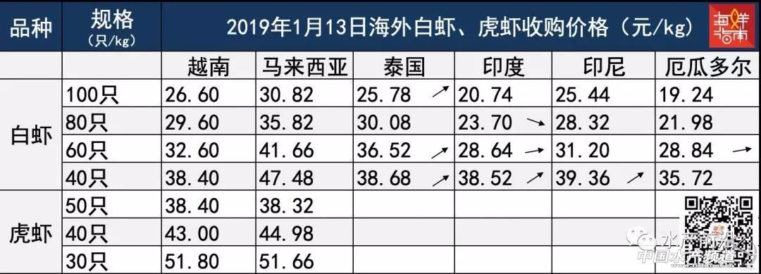 印尼:1月13日,印尼40只/kg原料蝦漲幅很大為3.8元/kg,其他規格暫無波動。