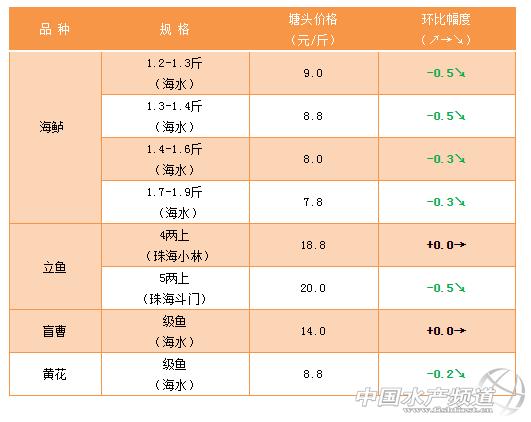 全線下滑!8月2日珠三角海水特種魚價格播報