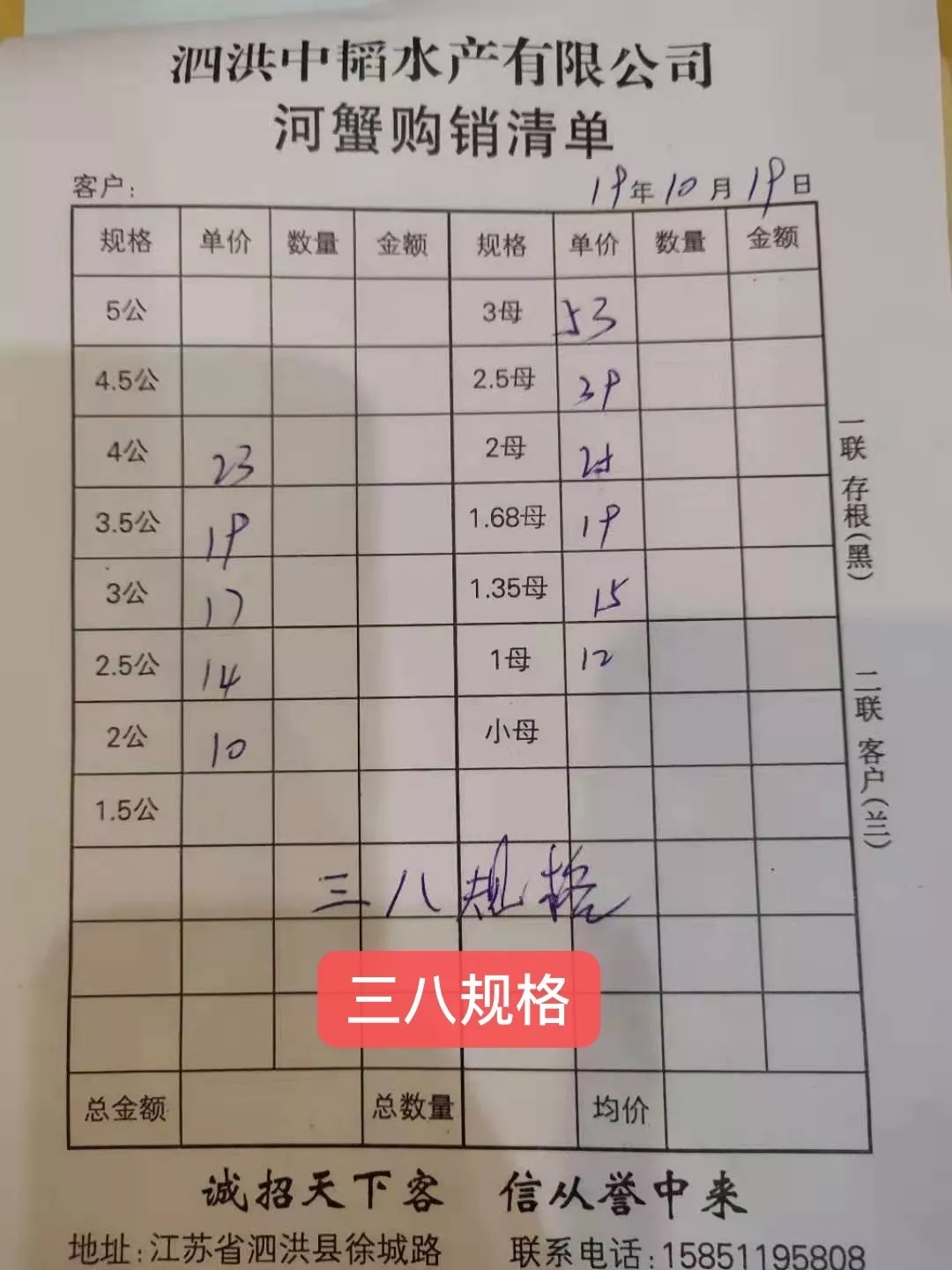 今天興化公蟹價格整體下跌,5公跌2元/斤,4公、3公等均跌1元/斤。母蟹僅2.5母漲1元/斤,其他母蟹價格未變。